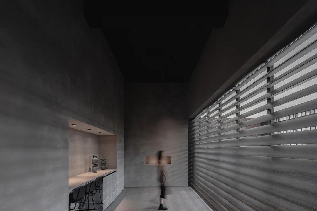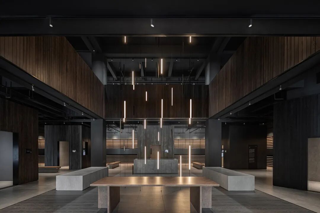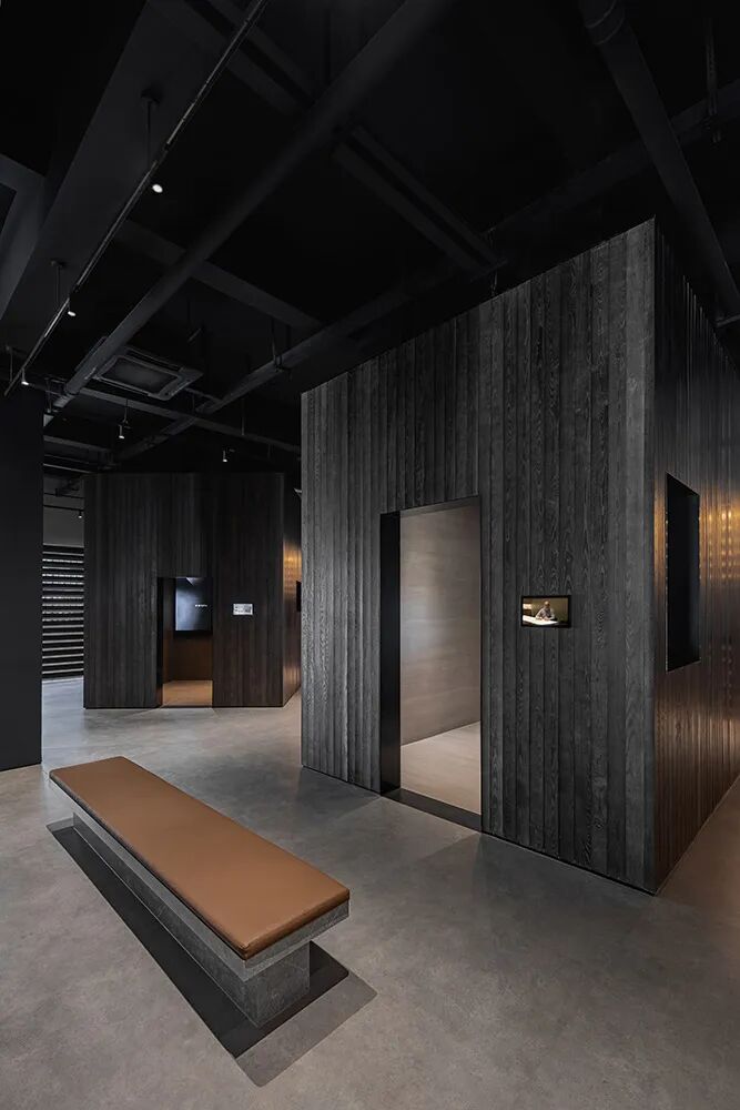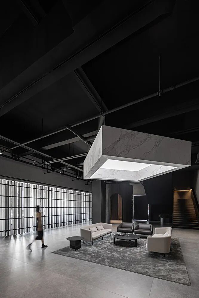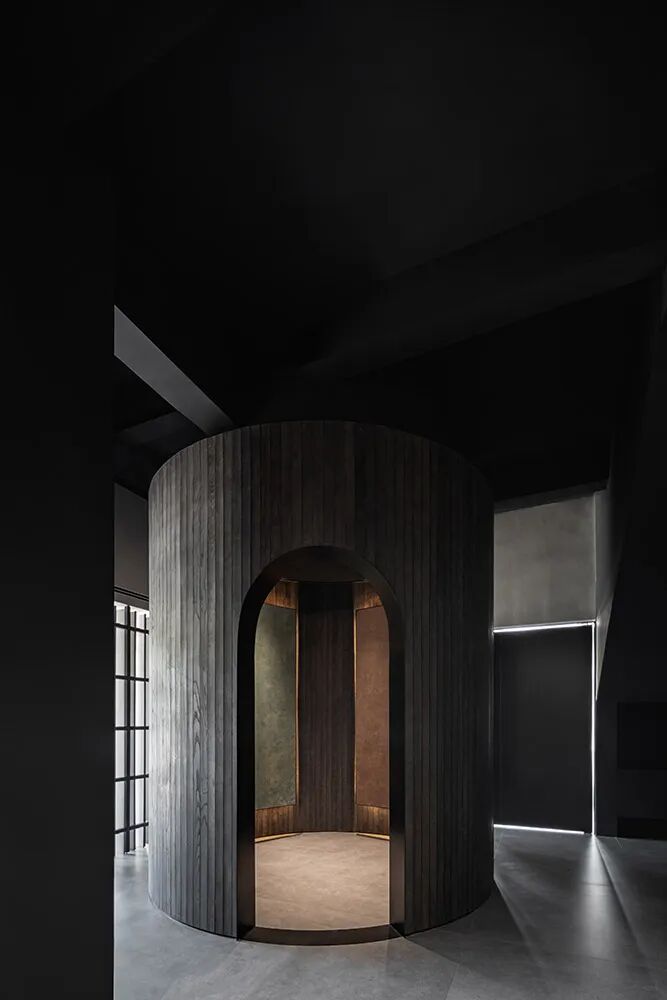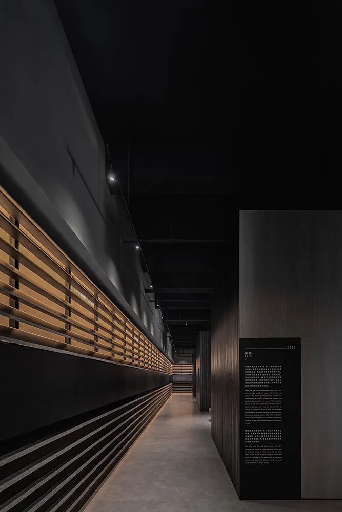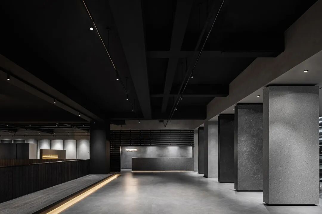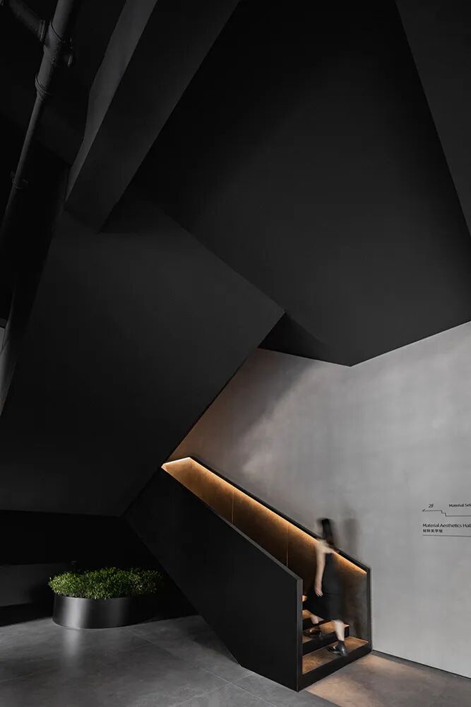 一层空间,采用博物馆的陈列方式,延续每个空间独立的思想,从大门口进入展厅,感受着跟传统的陶瓷展厅不一样:独立的空间组合,在这整体的设计中,围合着同一份“气”,隐而神秘,构筑成方向家居美学馆独有的“场”。
