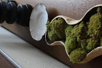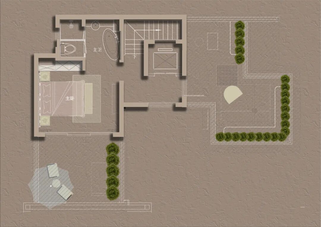 分割轮廓,调整灰度,点缀一株植物以注入生命力,砖石上恍惚间便向有了水波与月影斑驳的意象。有限的空间内,因此而氤氲出无限的浪漫。