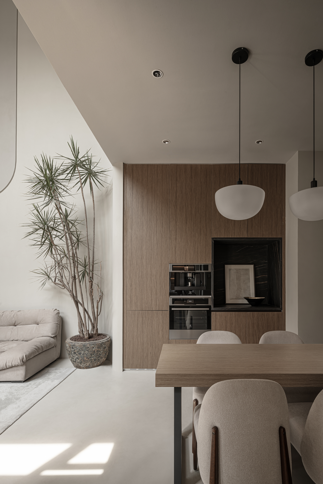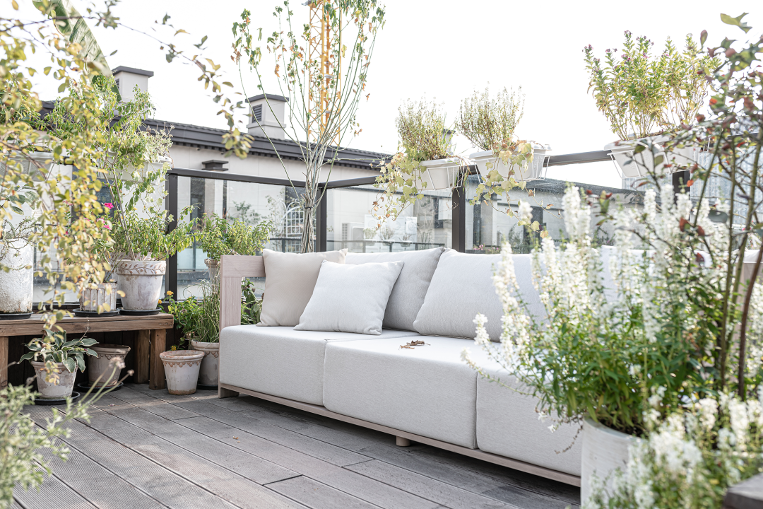 露台上的植物为生活糅入自然舒适的气质,柔软模糊的边界下,以丰富的光影为空间注入诗意,赋予平凡生活的每一天度假般的惬意随性。