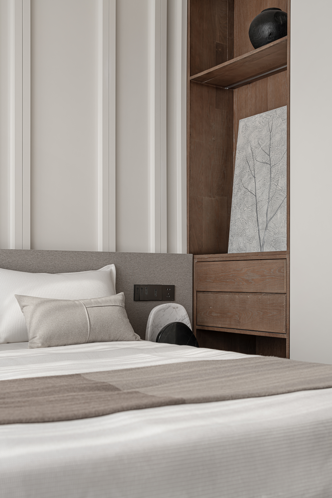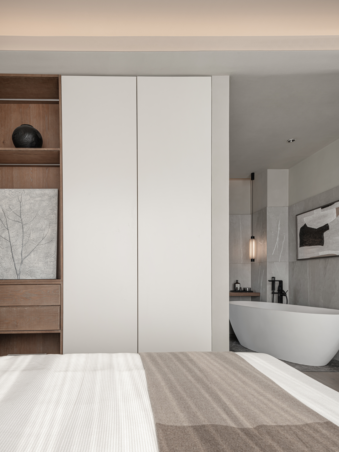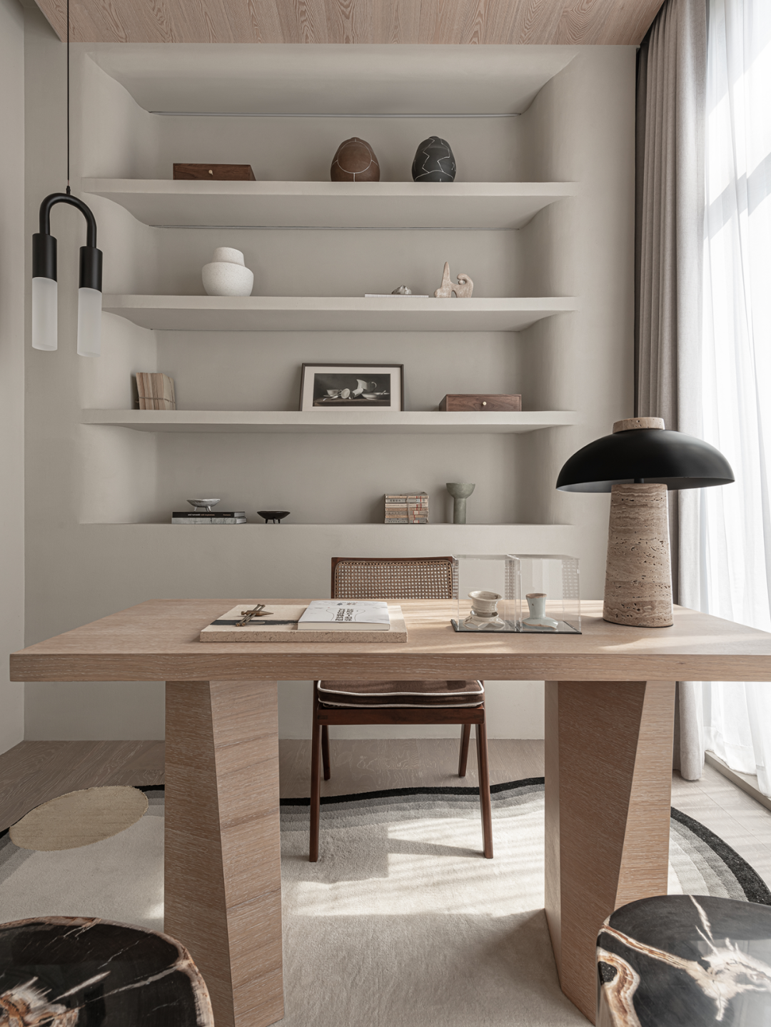 在木石色系的温柔包容之下,空间愈发淡然而轻盈,由此形成能够抚平焦虑、舒缓神经的场域。