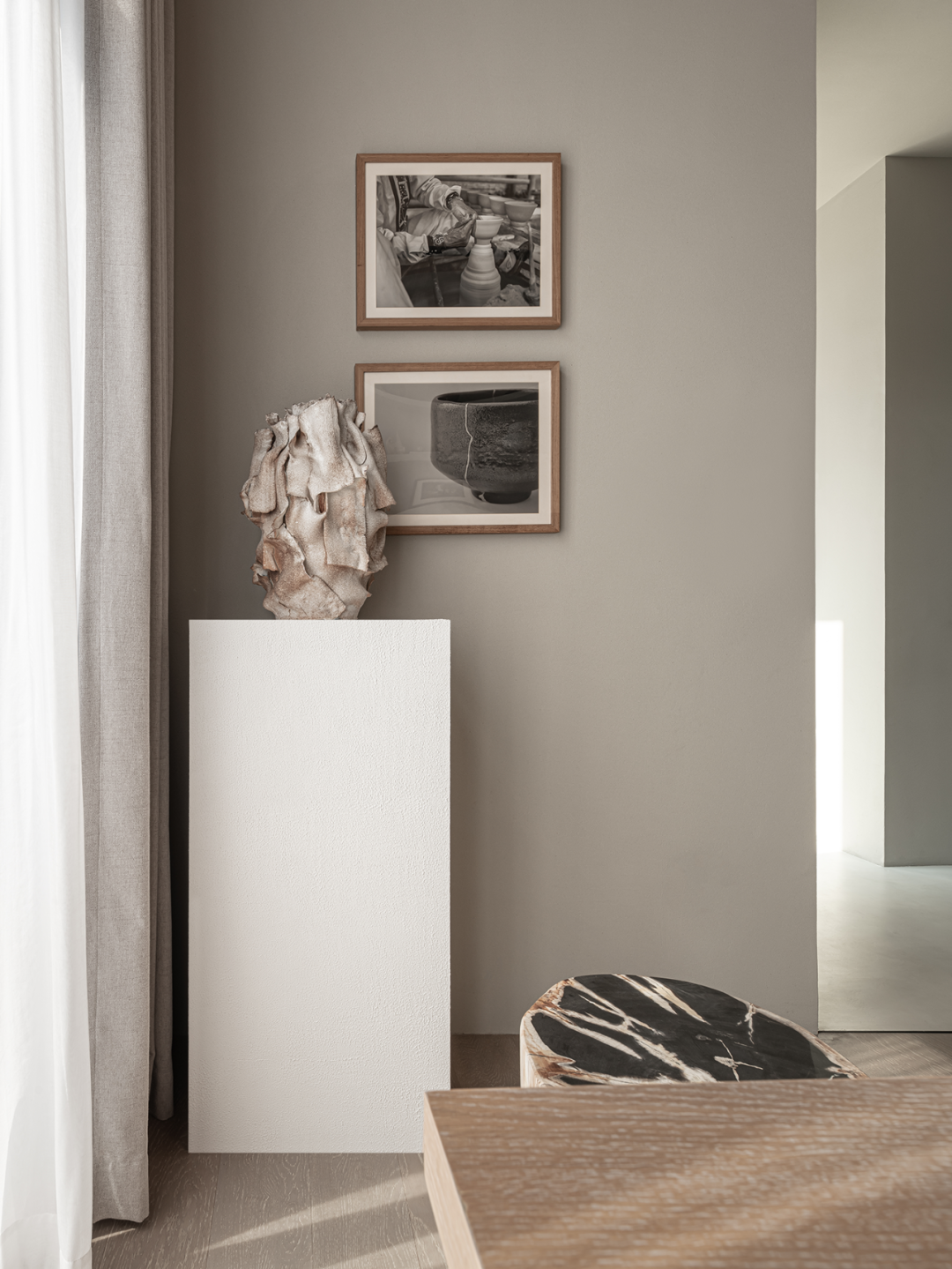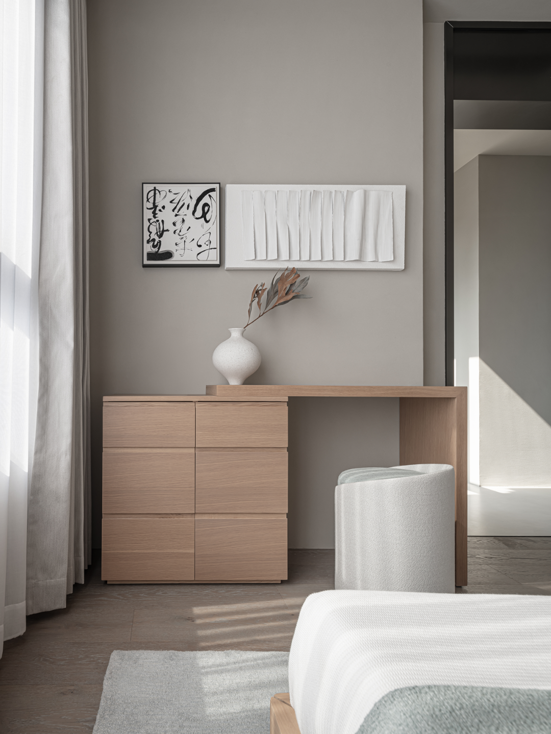 一缕柔和光线或疏松淡雅的色调,细腻温润地应和着材料纹理所带来的厚重感。无数细节在矛盾中交融,如同生活的回响。