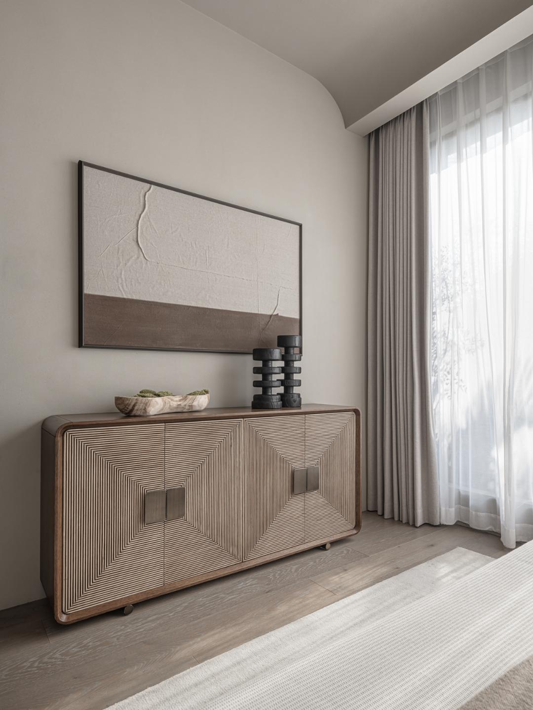 公共空间舒展,个人空间则力求内敛,褪去繁琐的华彩,摒弃矫饰,追寻静谧的力量,突出最本真的大方沉稳。