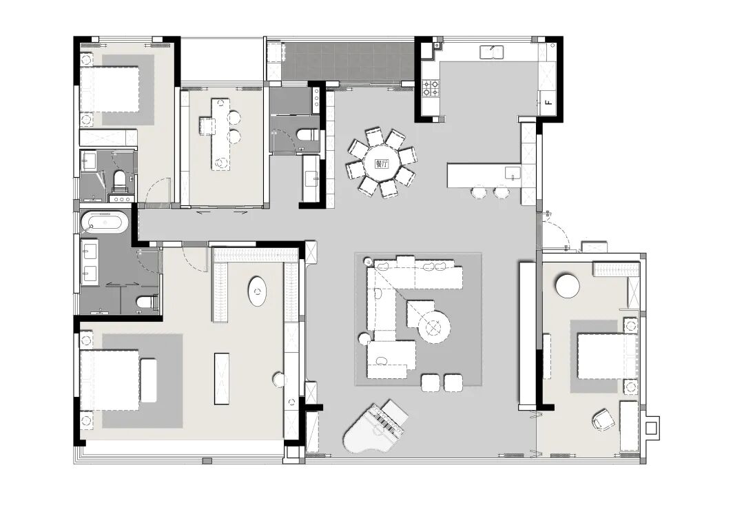 餐桌自然衔接吧台,超大极致的中西厨空间,体现了豪宅顶级级配。