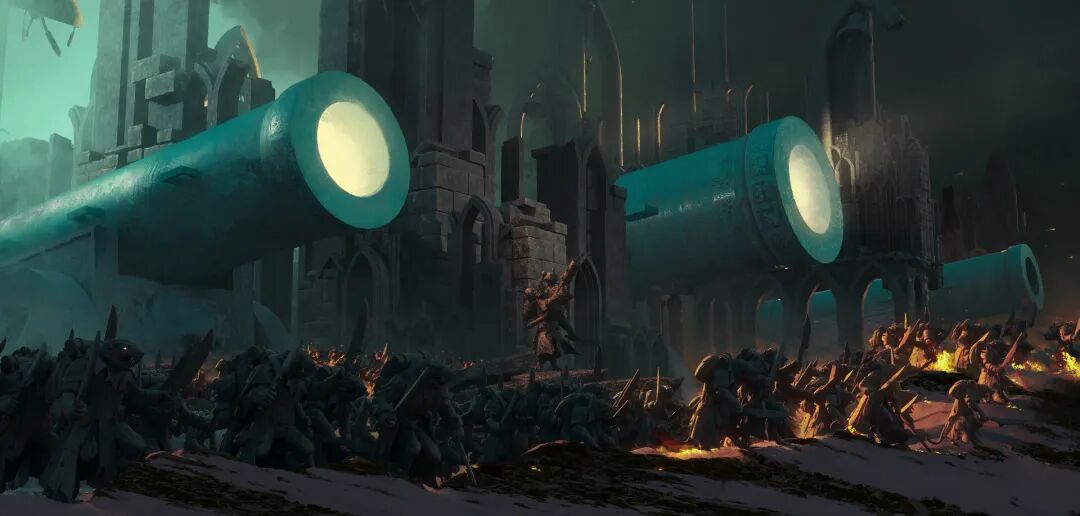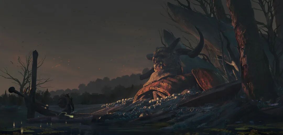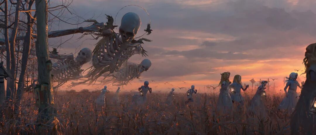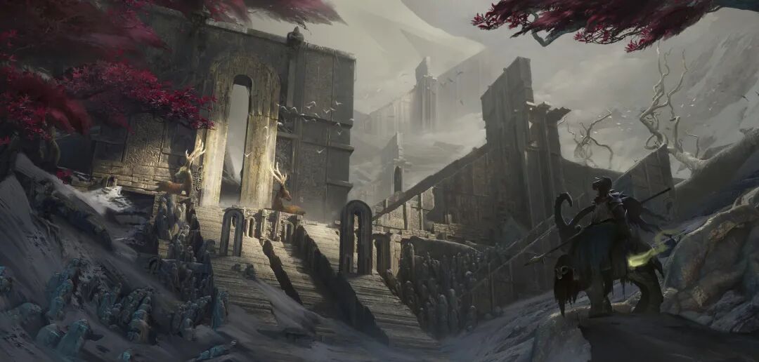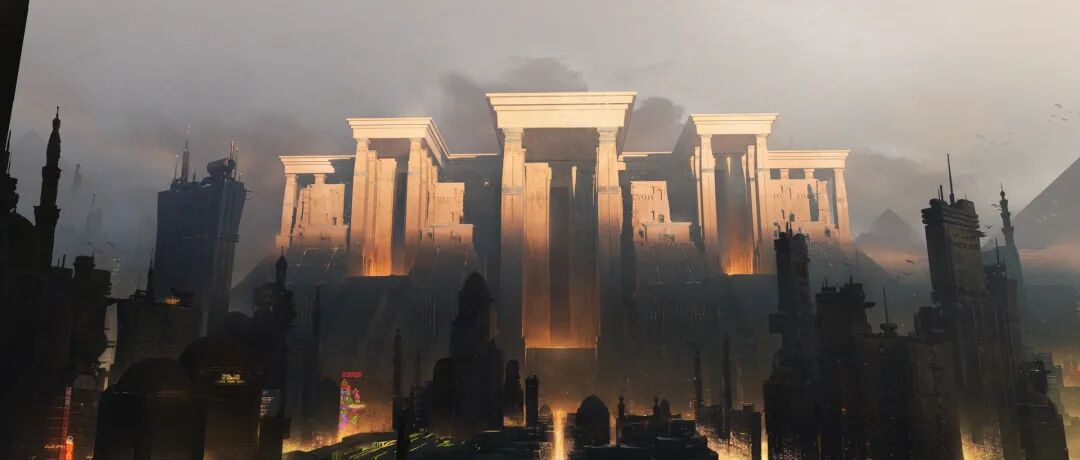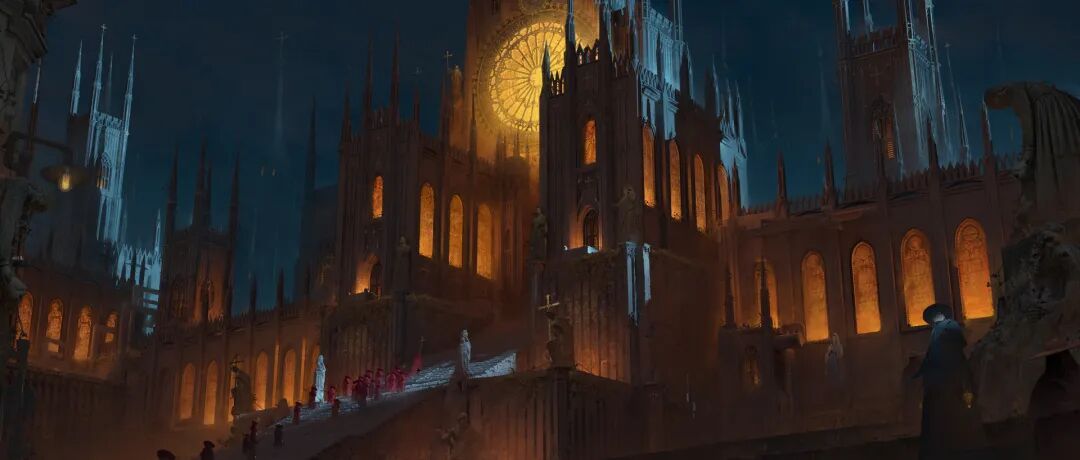 他的场景作品宏伟壮观,故事感很强,绝妙光影塑造出来的整体氛围压迫力十足,拥有电影般的高级质感。