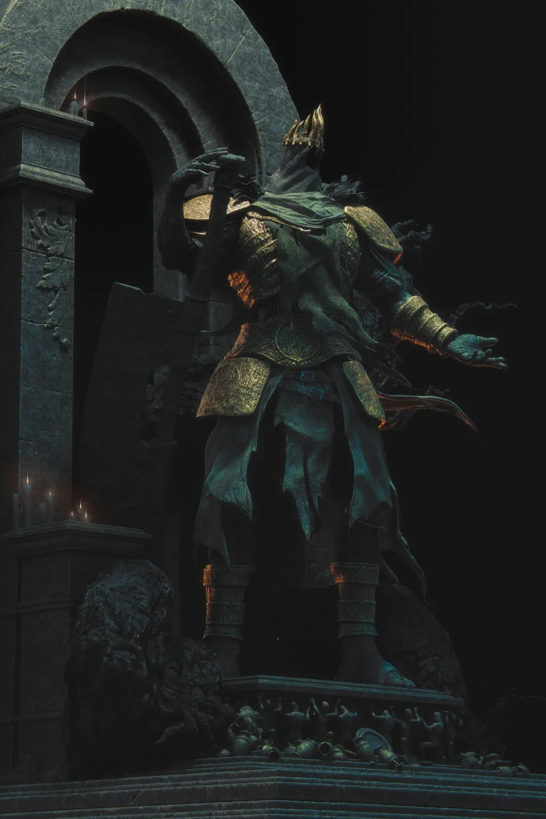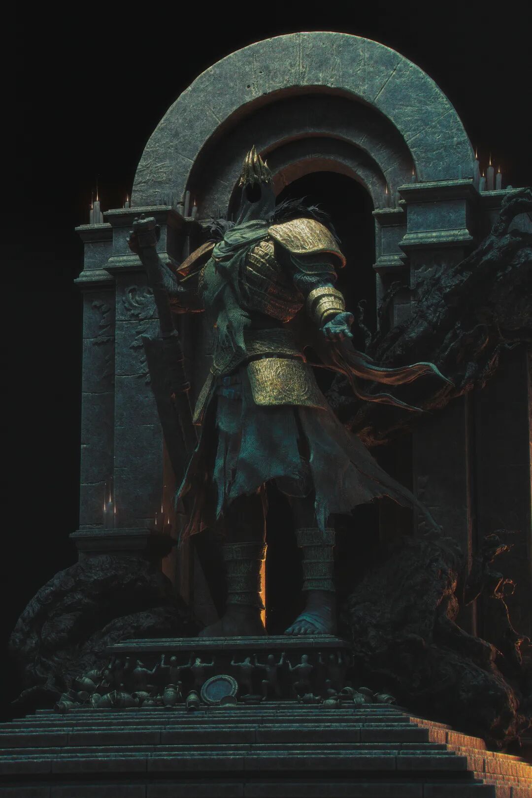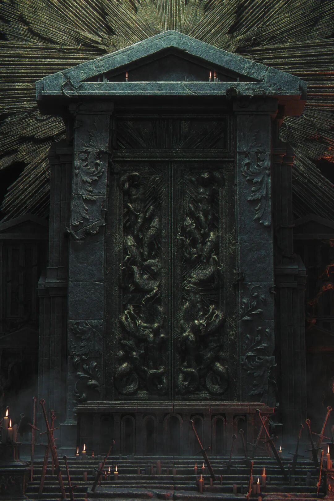 他的场景作品宏伟壮观,故事感很强,绝妙光影塑造出来的整体氛围压迫力十足,拥有电影般的高级质感。