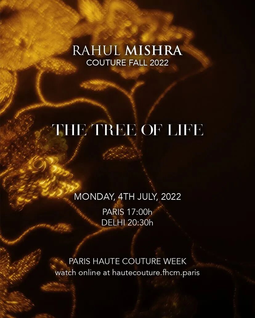 Rahul Mishra 2022秋冬高级定制时装“生命之树”,设计师从古树中汲取灵感,试图捕捉落日在树叶上的金色光芒,通过独特的材料与高超的手工技艺,展现“生命之树”的神秘与美丽。