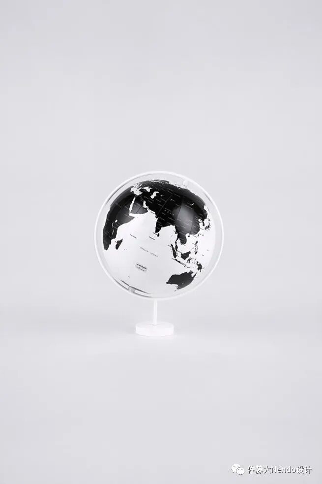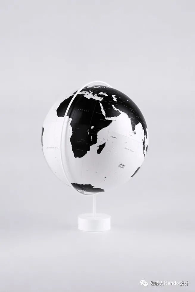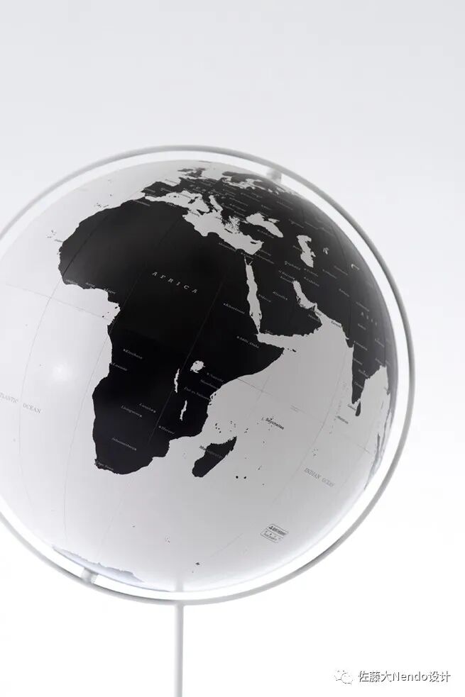 通过减少信息的数量,将海洋渲染成白色,将陆地渲染成黑色,日冕地球突出了岛屿和海岸线的轮廓。一个地球仪的支架应该是对地球仪的补充,所以我们创造了一个柔和的曲线,让它后退而不是突出,并在钢材上涂上粉末,使其焕然一新的、柔和的表面与地球仪光泽的表面融合。