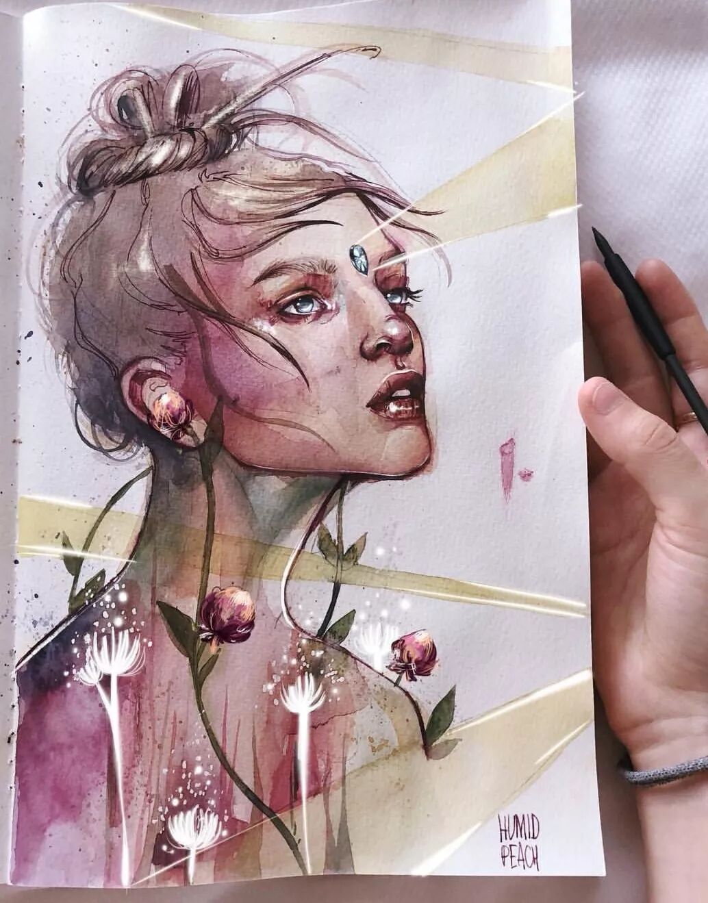 画水彩的少女美,少女笔下的水彩更美。来自俄罗斯的Humid Peach擅长在将思绪倾泻在水彩的晕染与停留之间,一笔一画都是生活给与的馈赠与感悟。没错,水彩的美只有你想不到,没有画不到,又有谁能不爱上水彩呢?