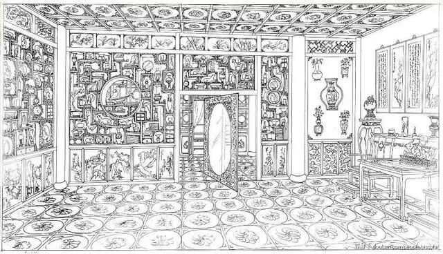怡红院内“四面墙壁玲珑剔透,琴剑瓶炉皆贴在墙上,錦籠紗罩,金彩珠光,連地下踩的磚,皆是碧綠鑿花”