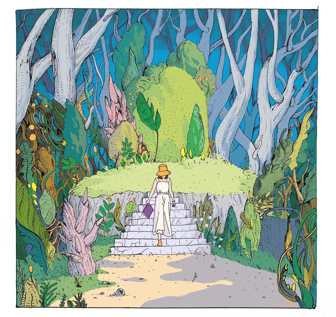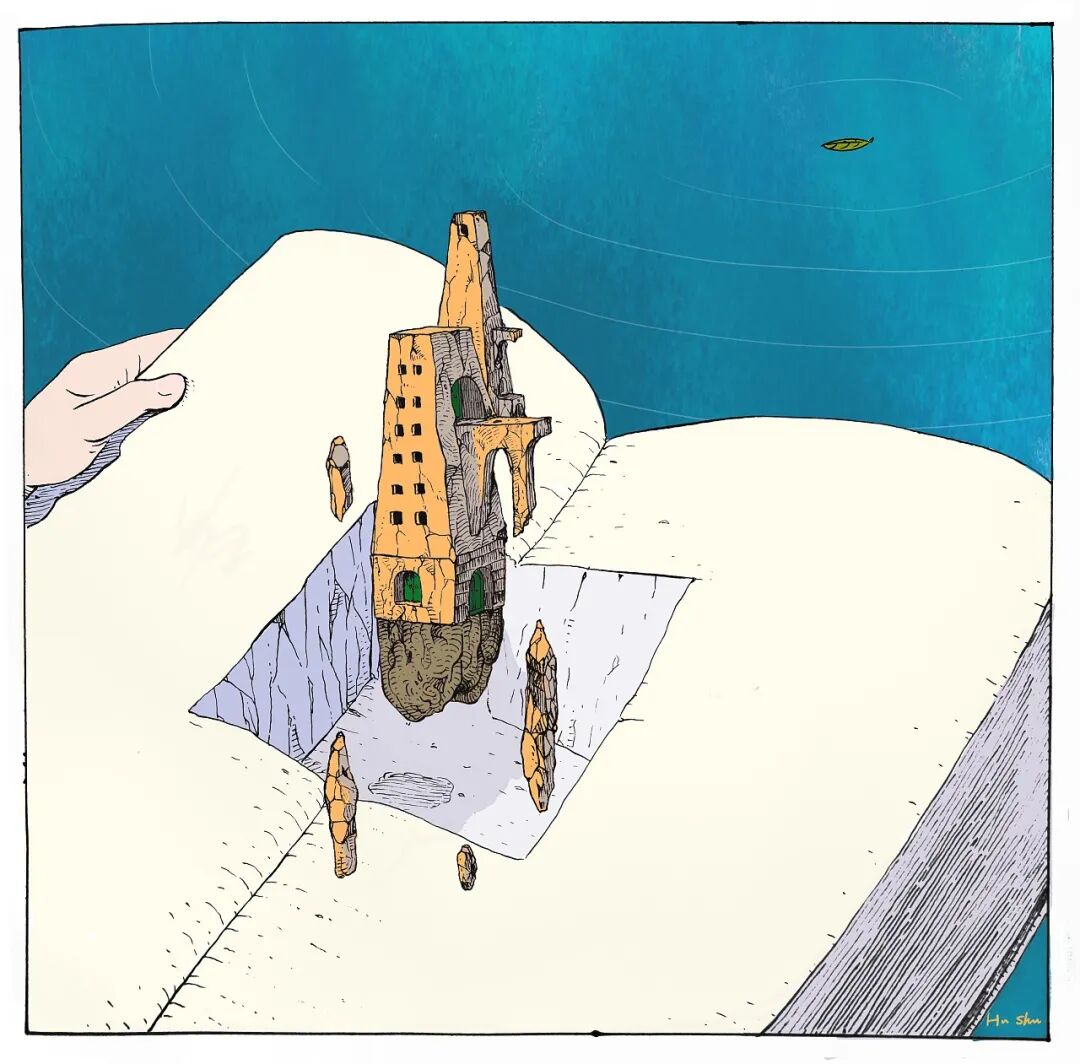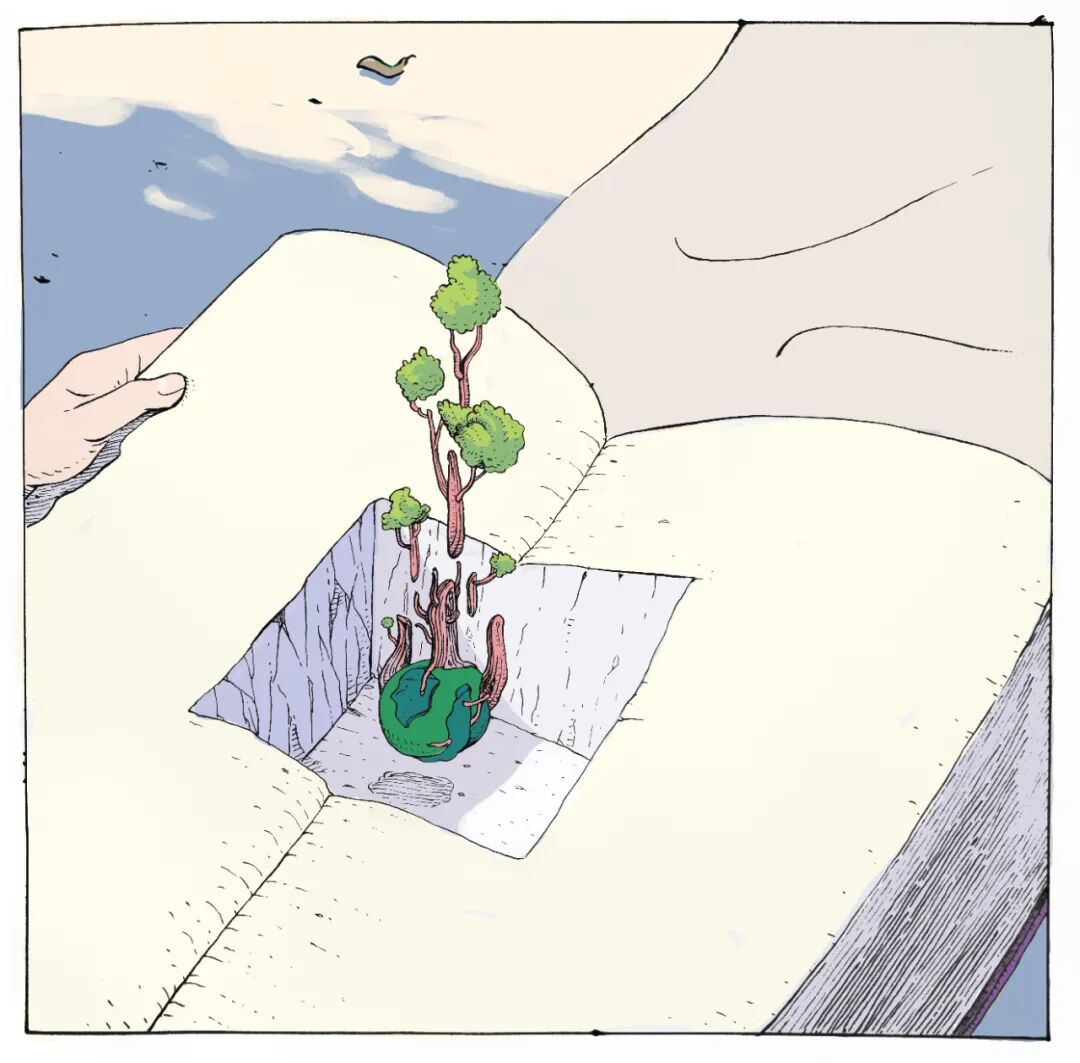 创作思路:这个系列的故事是一个简单的动作,甚至都不是一个故事,一本每次打开都能带动周围环境变化的书,一个无始无终的旅途。这个想法来源于我意识到书是读不完的,世界也是看不完的,这种遗憾恰巧是生活的热情,也是创作的重要来源。