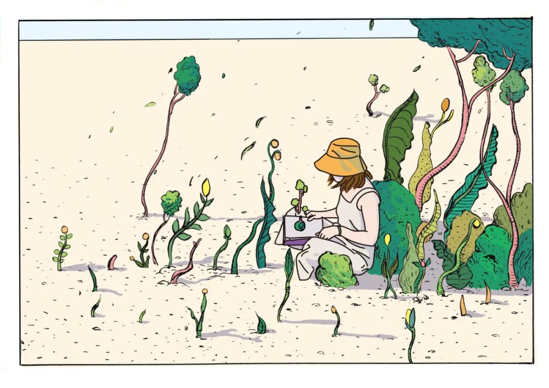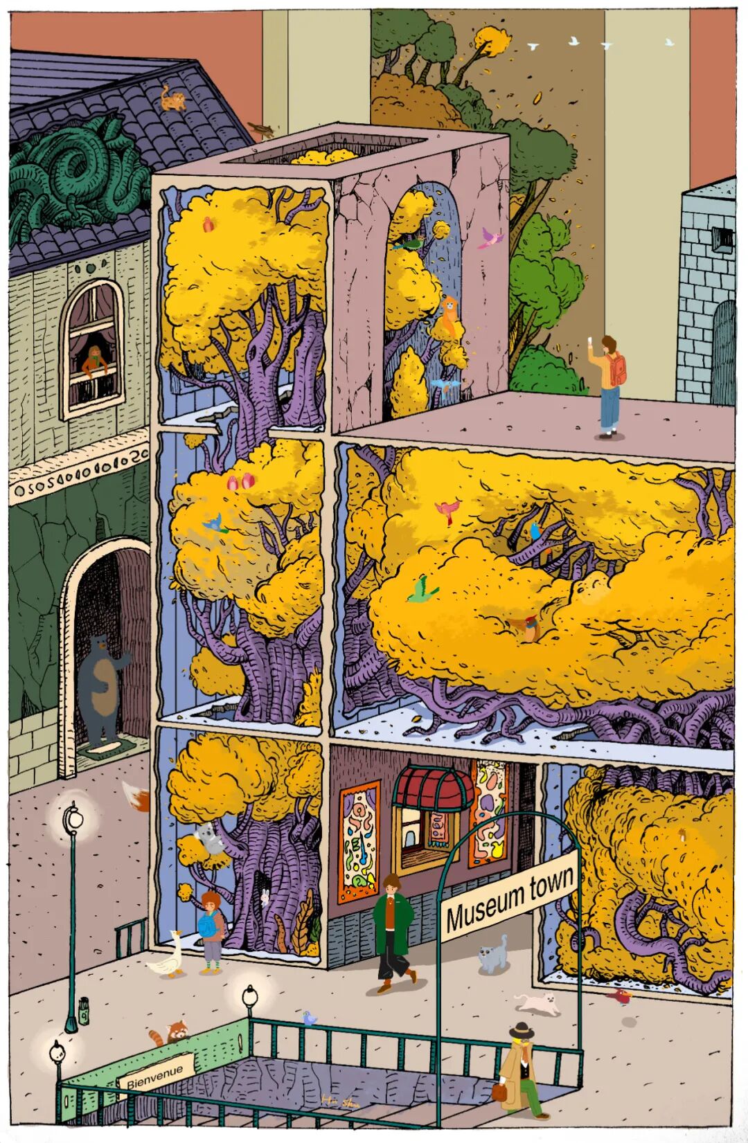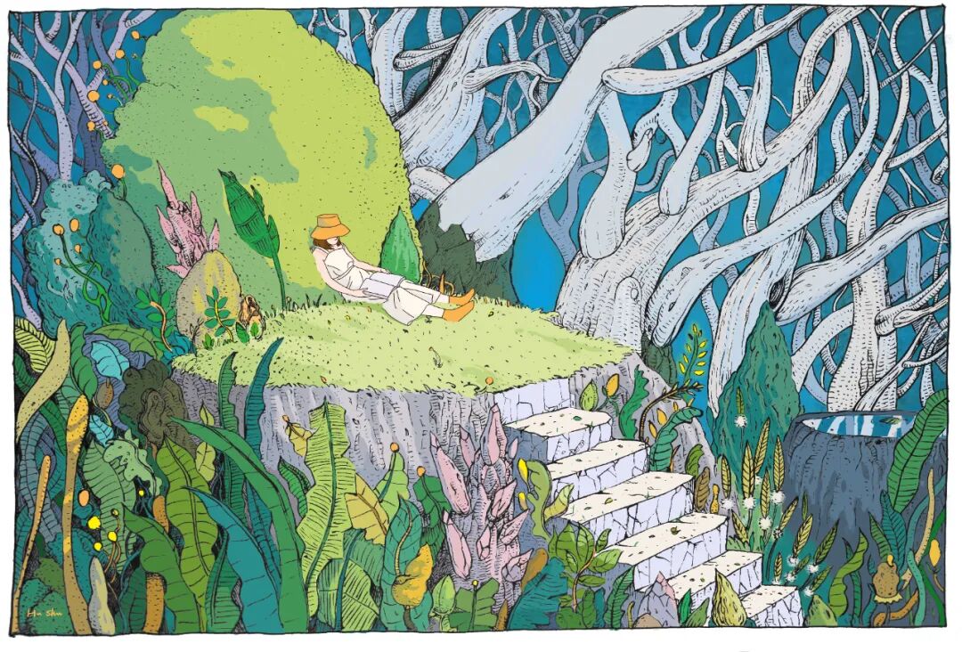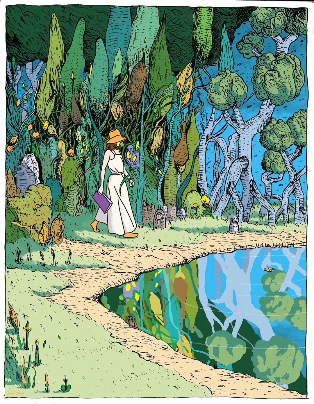 创作思路:这个系列的故事是一个简单的动作,甚至都不是一个故事,一本每次打开都能带动周围环境变化的书,一个无始无终的旅途。这个想法来源于我意识到书是读不完的,世界也是看不完的,这种遗憾恰巧是生活的热情,也是创作的重要来源。