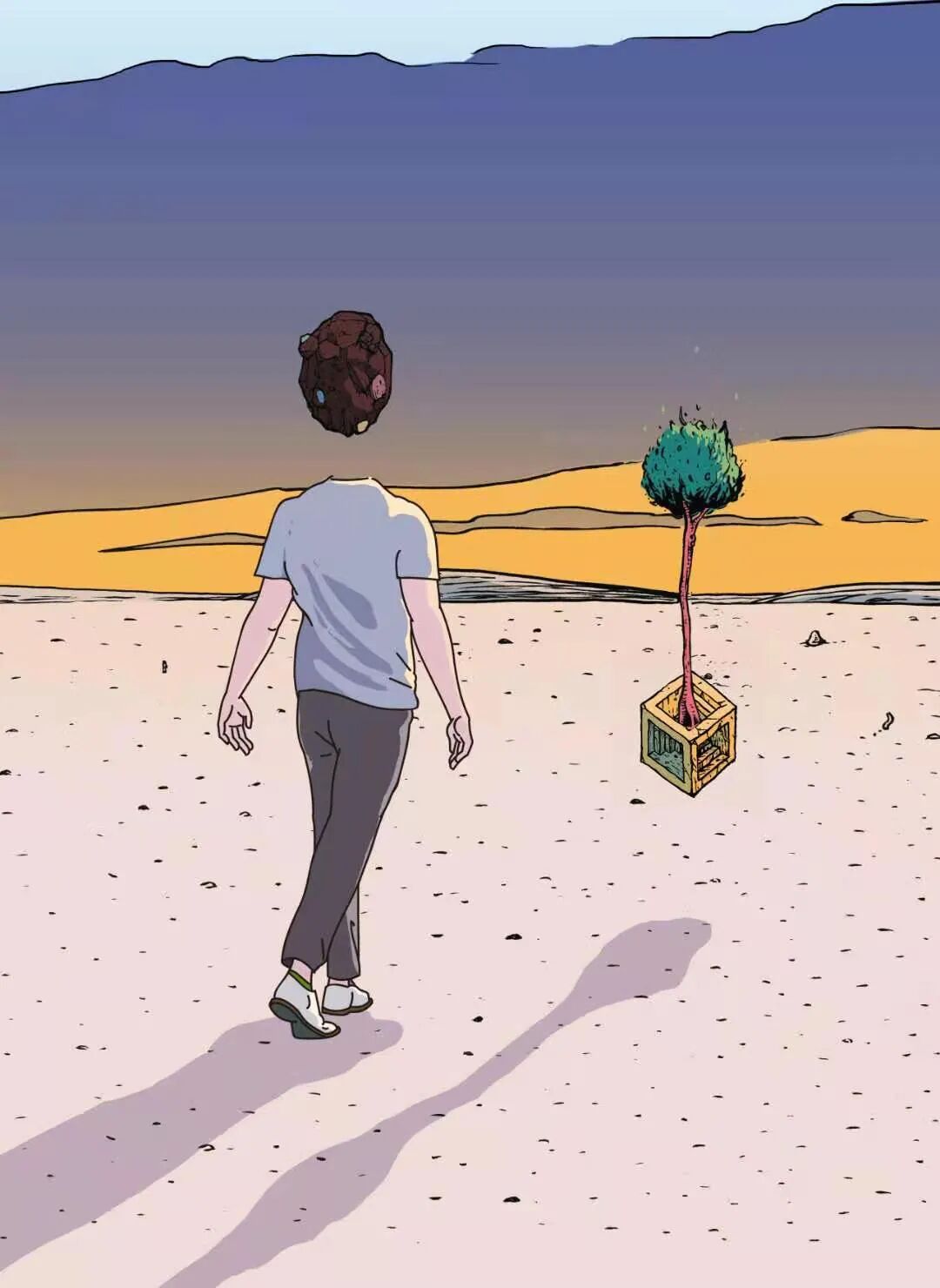 他对于使用绘画来建立一个叙事结构有着极大的兴趣,也因此开启了他的插画创作之路。他开始尝试用绘画来讲故事,用视觉元素来写小说,以系列为单位创作了一个个有独立意义又互相在视觉语言上呼应的作品。