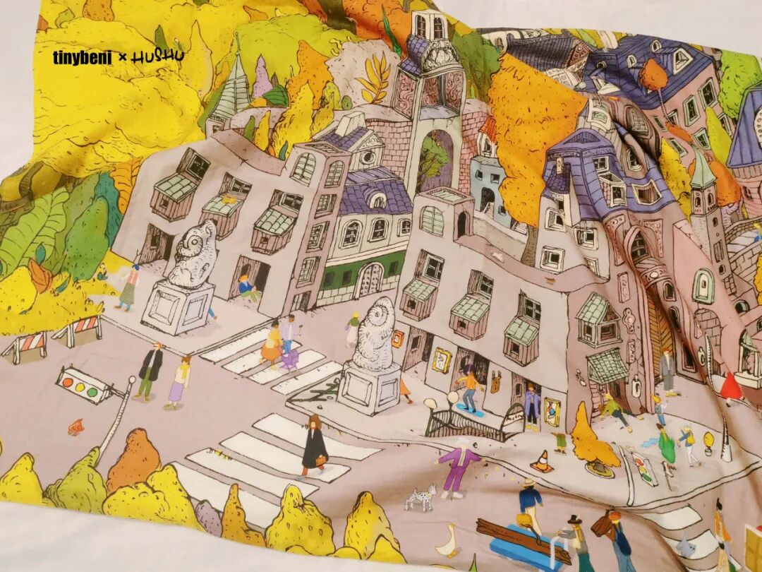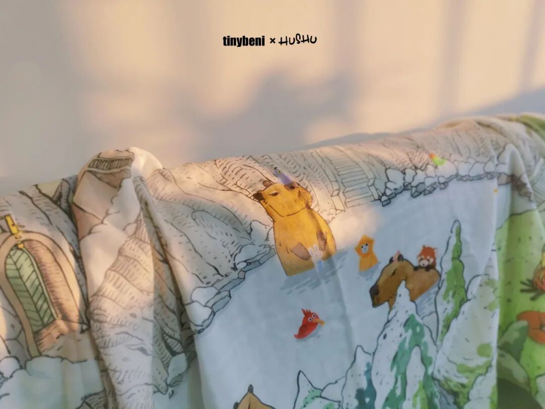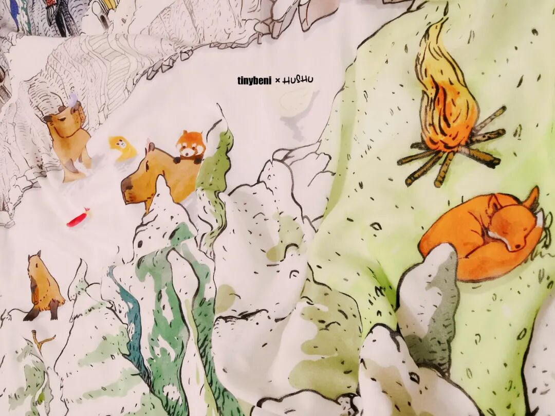 创作简介:与tinybeni合作的婴儿安抚方巾盖毯,以动植物为主的画面营造出温暖安静的氛围。