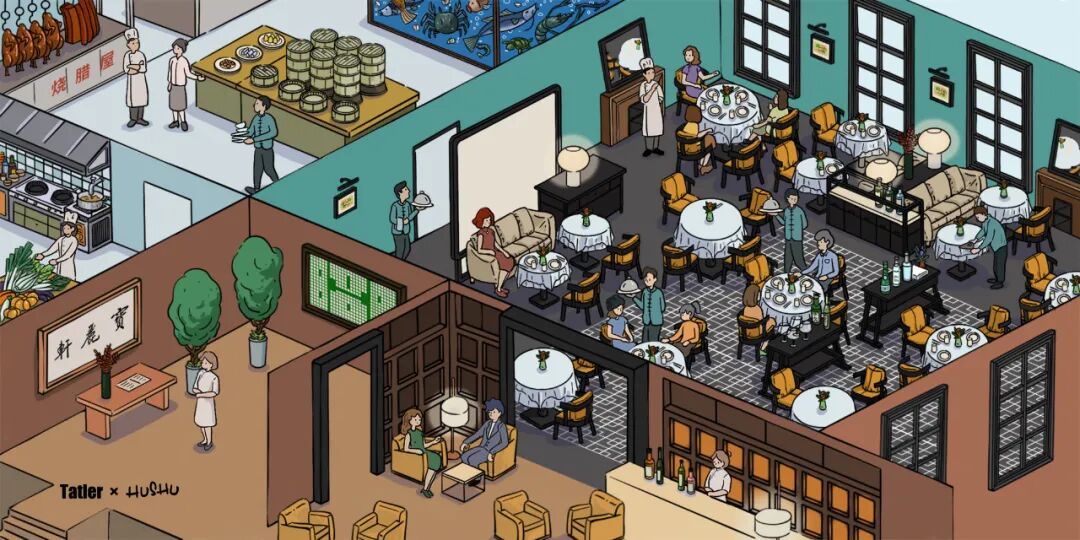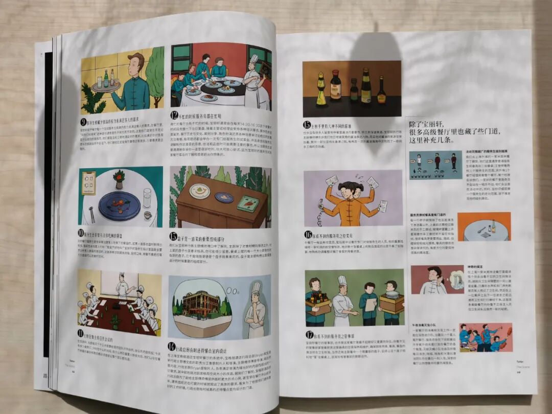 创作简介:2021年底受杂志Tatler委托为米其林二星餐厅宝丽轩创作插画,介绍这家位于上海宝格丽酒店充满创造力的中餐厅里的16条精致门道。Tatler是1709年诞生于英国的一本文学与社会期刊,有人把它称为“社交媒体的鼻祖”。聚焦人、圈子、社交、责任,关注新一代有责任感的企业家和富有创造力的思想家,希望重建符合时代精神的社交价值。