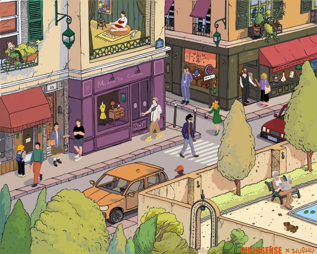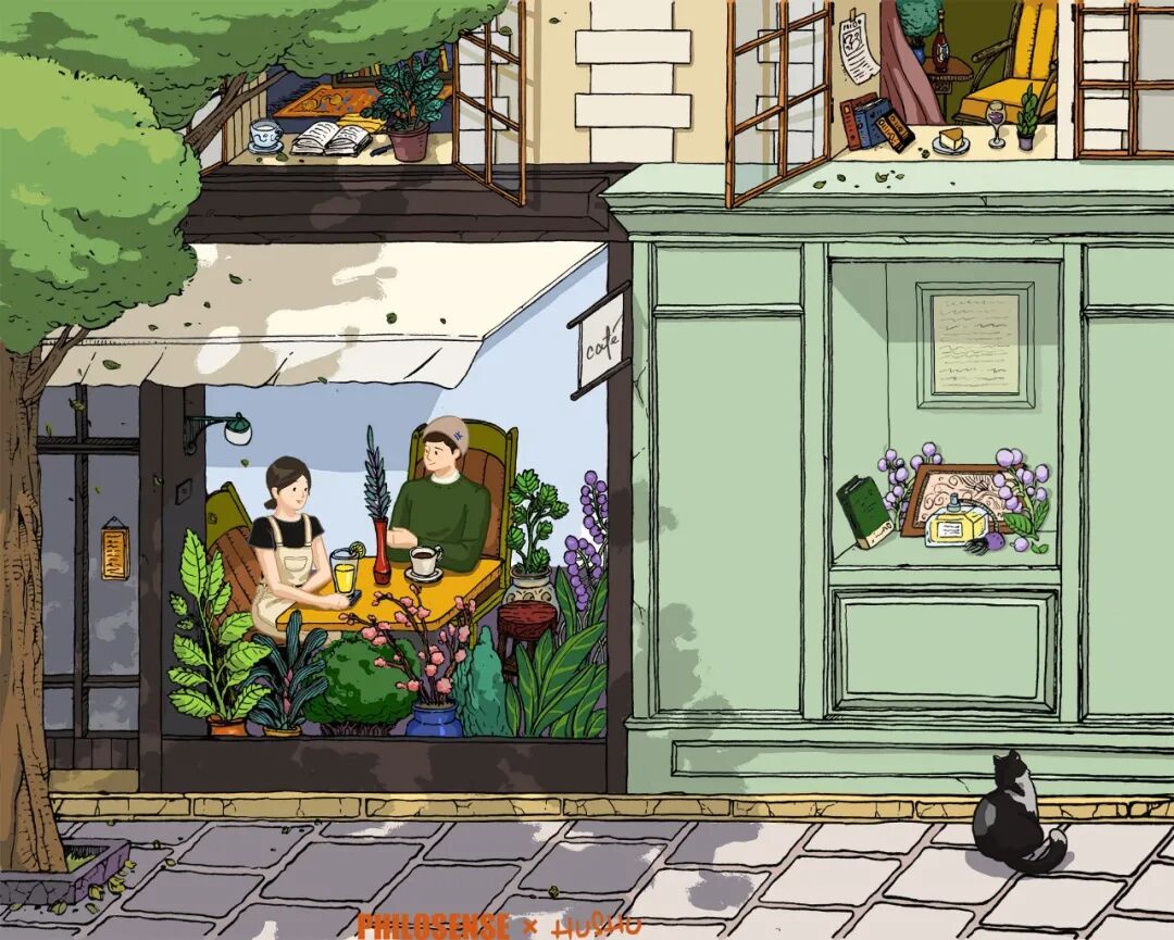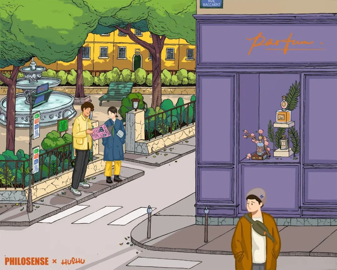 创作简介:2021非常有趣的合作项目。受Philosense馡凡香水剧场委托,创作了关于香气和示爱的插画绘本,一个发生在城市温暖街区充满幽香和爱意的故事。