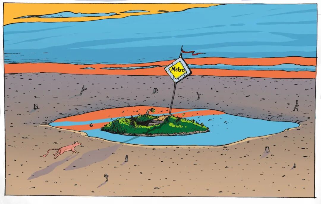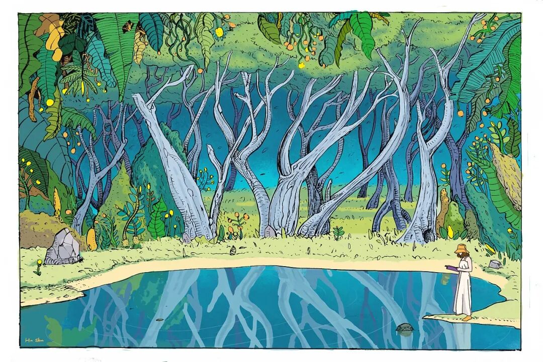 △ 法国漫画大师莫比斯的奇幻插画  漫画界的鸟山明、松北大洋,插画界的寺田克也,动画界的宫崎骏、大友克洋,电影界的吕克·贝松、詹姆斯·卡梅隆、乔治·卢卡斯、雷德利·斯科特等等都拜倒在他独特的架空世界下