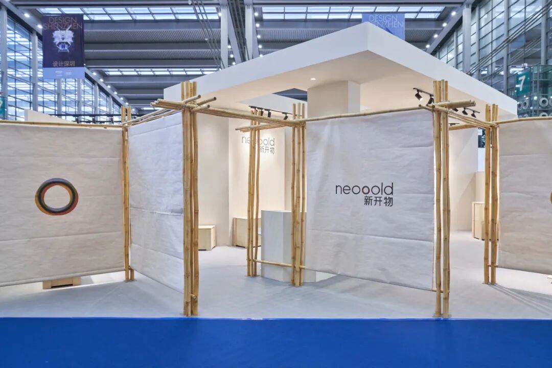 “Future Home未来之家由设计师冯志锋、周建杰,携手A Park品牌,从深圳本土文化出发,以概念、跨界、多元合作的方式打造启发式的未来之家空间;由工业设计师陈旻策展的“neooold新开物看茶为主题,以竹与傣纸作为主要空间元素,将运输艺术品的木箱回收,并将其化身为可持续利用的展示柜台,在繁华的深圳展场搭建了一隅重屏掩映、新旧合宜的竹庐茶室