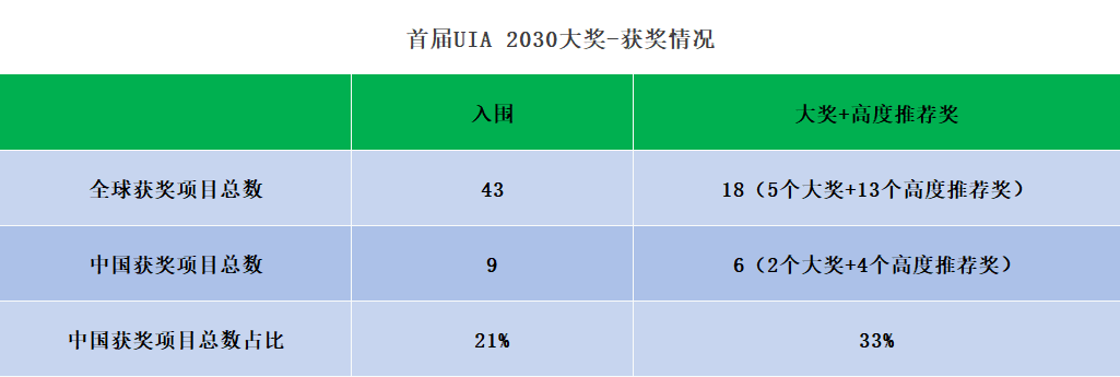本期全球设计奖项研究所为大家整理了首届UIA 2030 大奖名单。据主办方透露,本届收到了来自40个国家的125个项目,经过评审,共43个项目入围参与决赛,最终5个项目斩获UIA 2030大奖,13个项目荣获高度推荐奖;其中中国2个项目斩获大奖,4个项目荣获高度推荐奖!