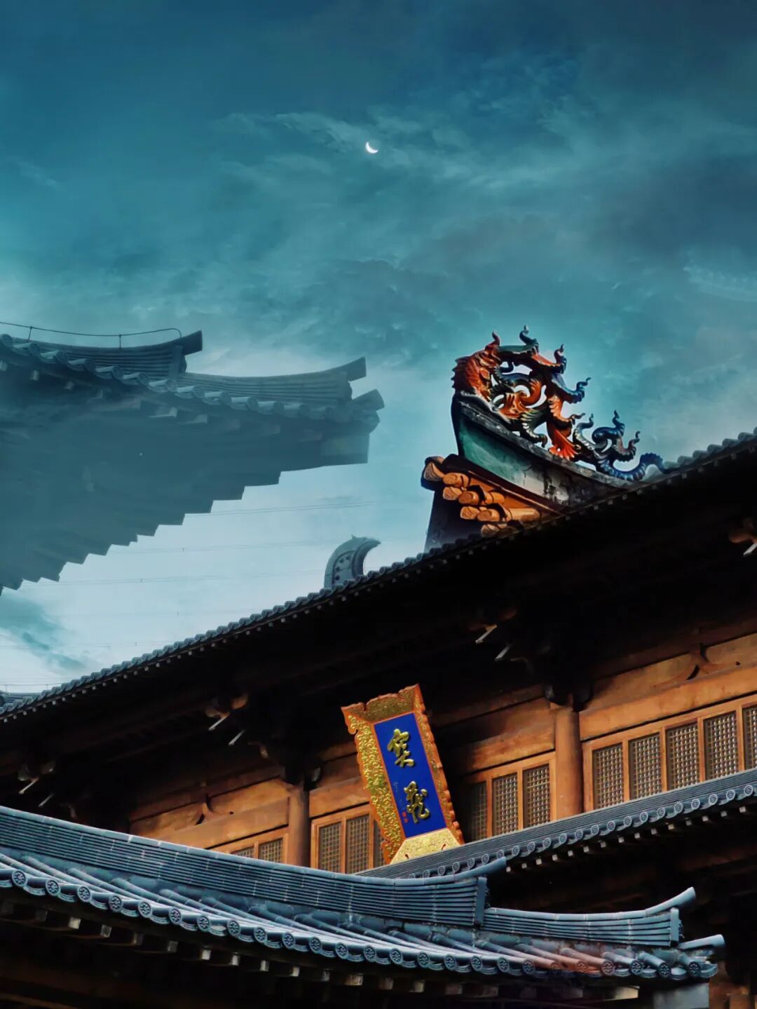 作品亮点:极简,建筑与月亮的对比感