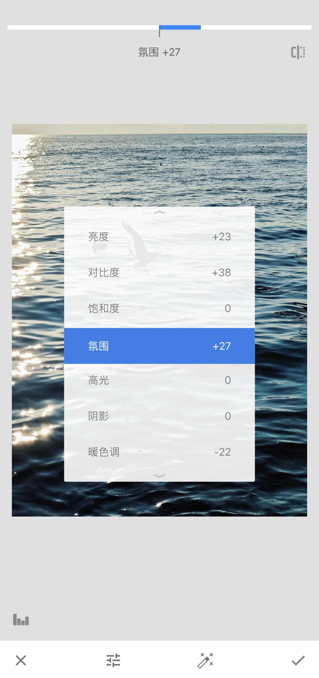 这里和大家分享一下后期的调色,我是使用snapseed,这张照片的调色也很简单,把背景中其他鸟修复干净,之后再套用滤镜和调基本参数就好了。