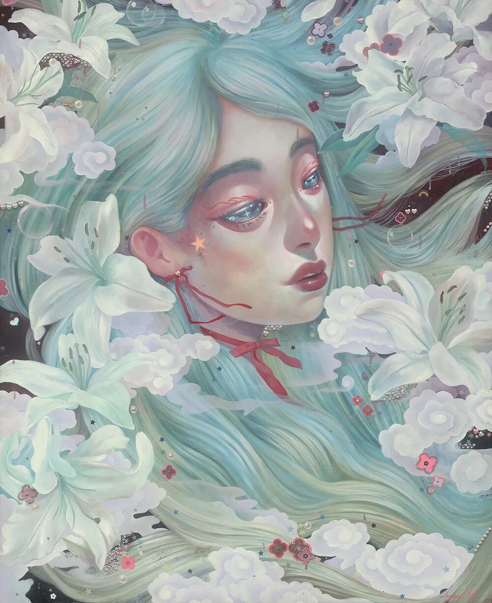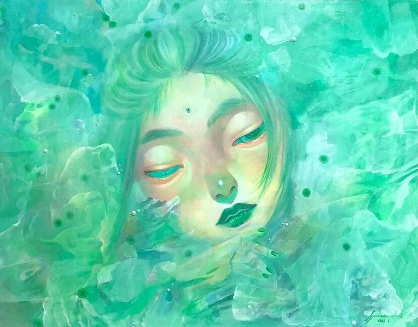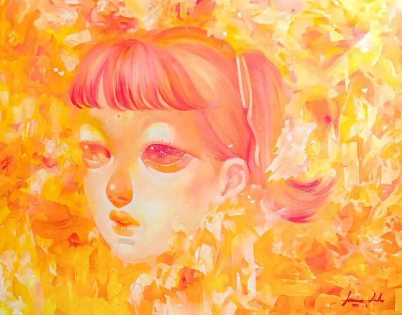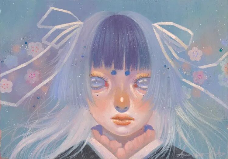 日本新锐艺术家丸山纯奈(Junna Maruyama),1999年生于埼玉县,师承日本“距离感主义”艺术家高松和树。由于母亲健康状况欠佳,父亲长期忙于工作,作为家中长女的丸山纯奈,扛起了照顾家中弟弟妹妹的任务。在闲暇时间,丸山纯奈用画作绘出心中的只言片语,丰富情感也揉进作品当中。