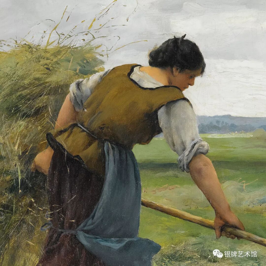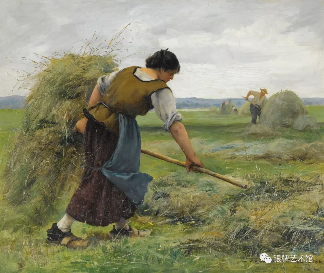 大家好!今天给大家介绍法国画家朱利安•杜普荷创作于1886年的油画作品《收牧草的农妇》,现由私人收藏。