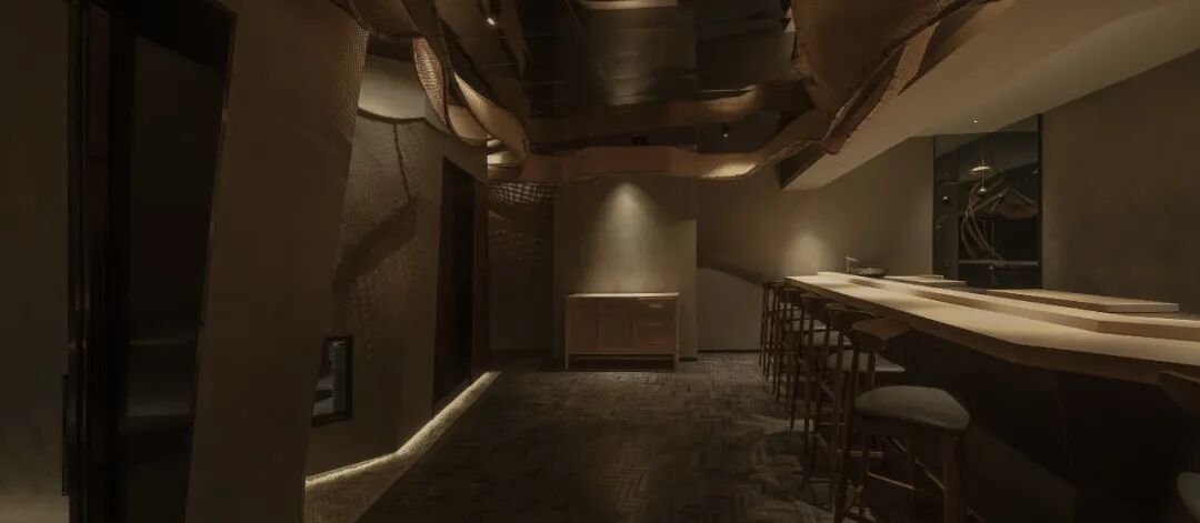 项目位于广州繁华的淘金路,为更加的体现出日式料理中食物自身的特色,在设计上采取了装置先行的设计手法和极简的装修风格,大面积使用灰调背景色营造出幽静氛围,浅色延绵的竹元素装置增加观感的体验度,竹元素一直以来都是日本文化中富有代表性的元素之一,也能更好体现主旨。
