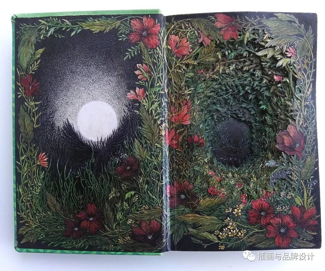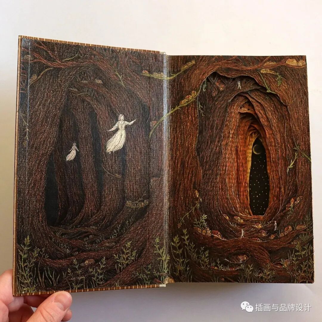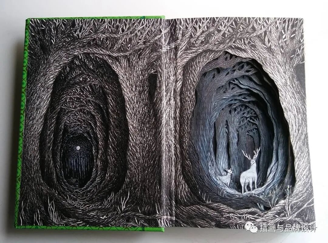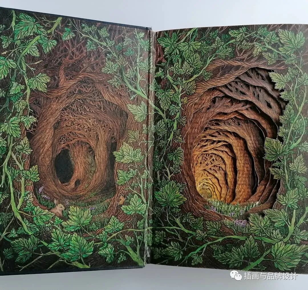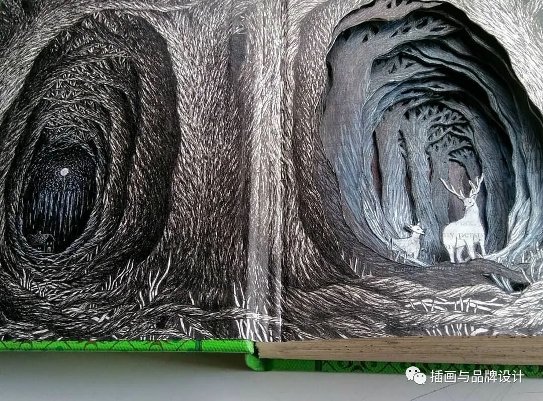 /手作插画丨与传统书封不同,她以雕刻绘画神秘森林之景,唤醒童年回忆
