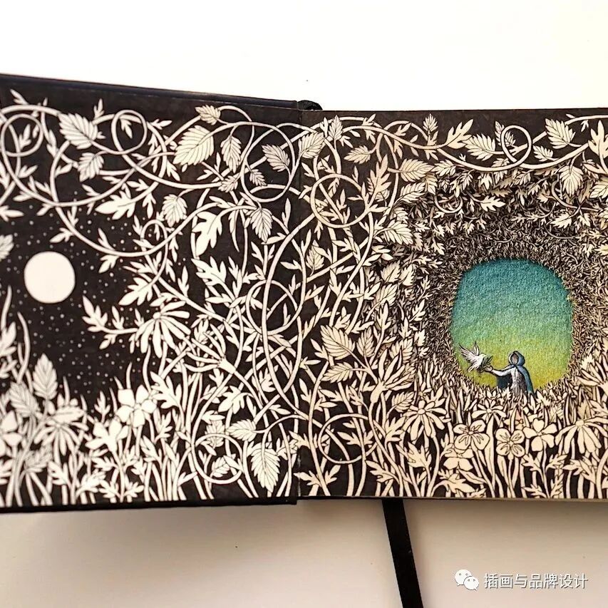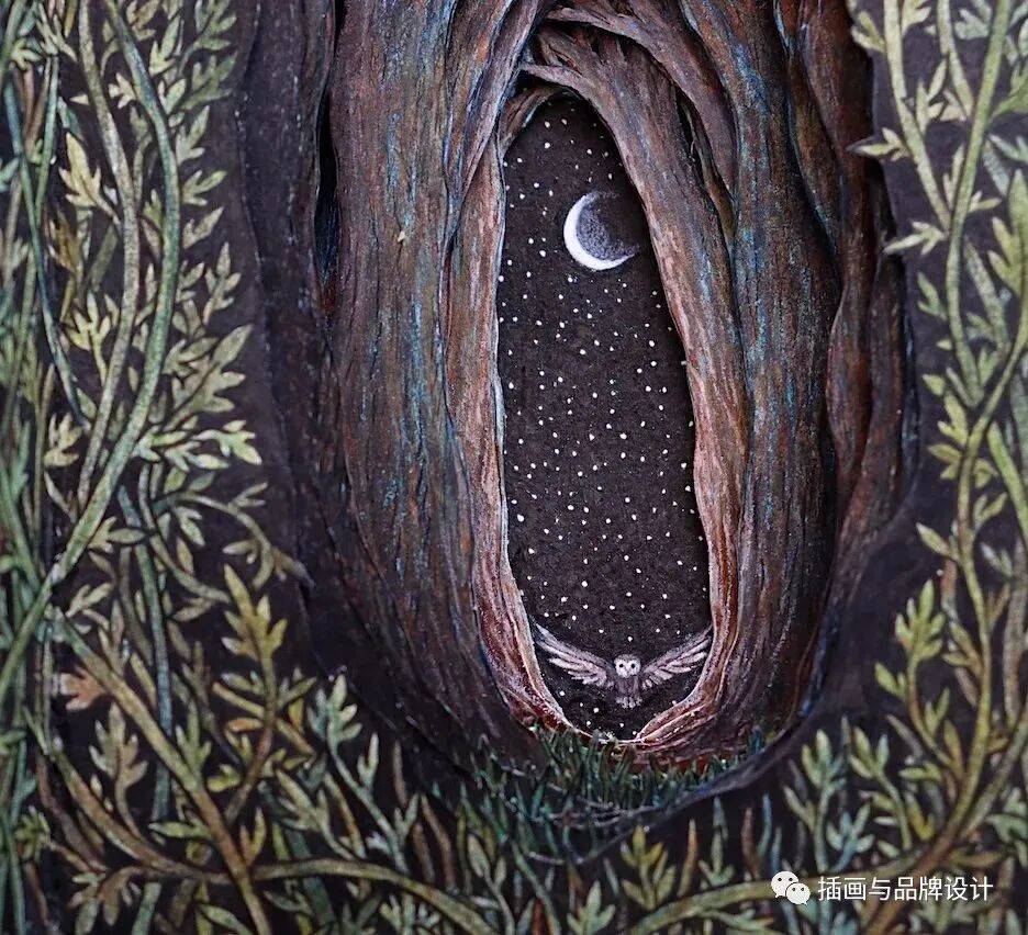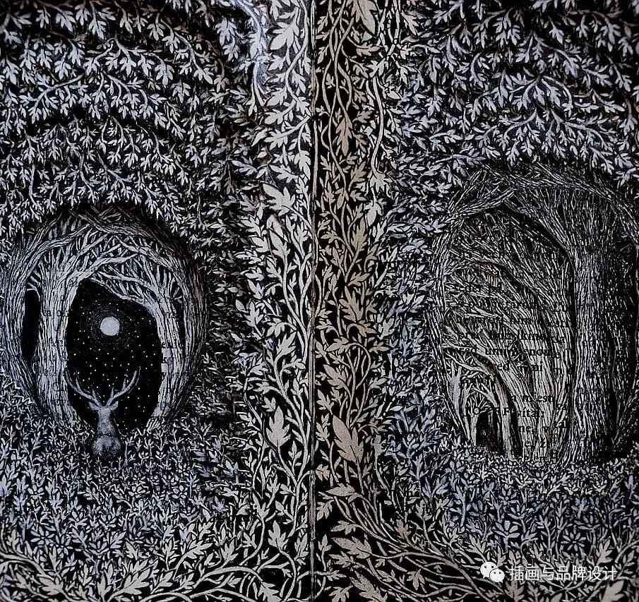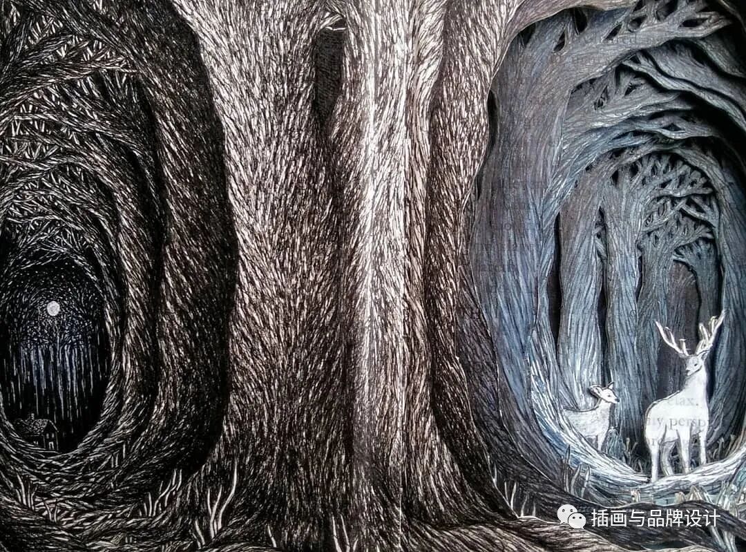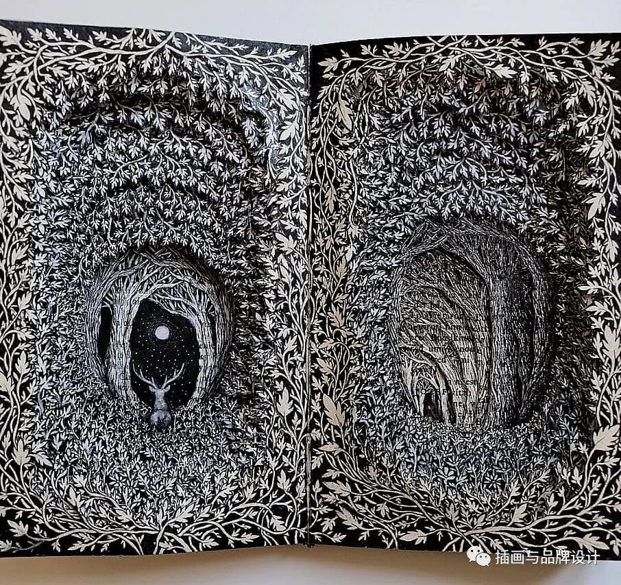 /手作插画丨与传统书封不同,她以雕刻绘画神秘森林之景,唤醒童年回忆