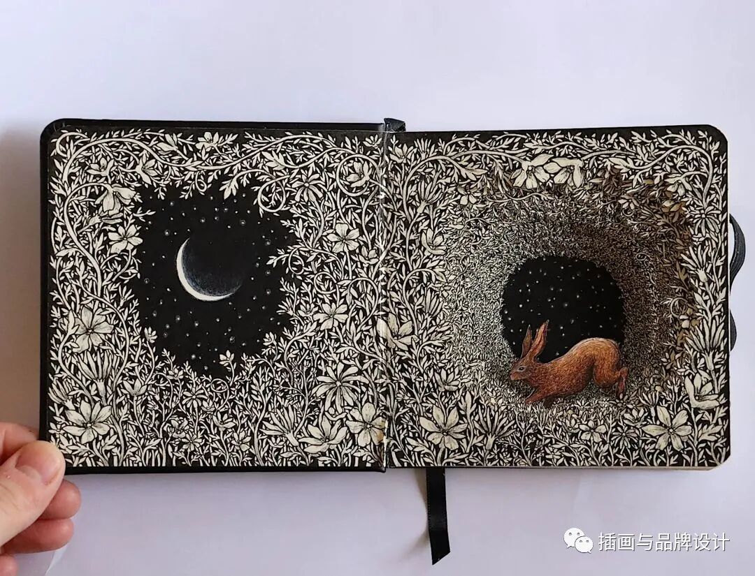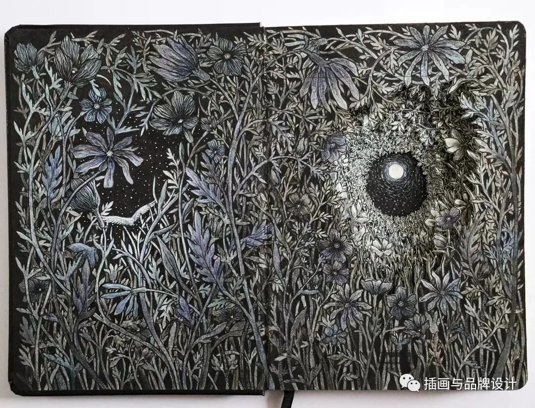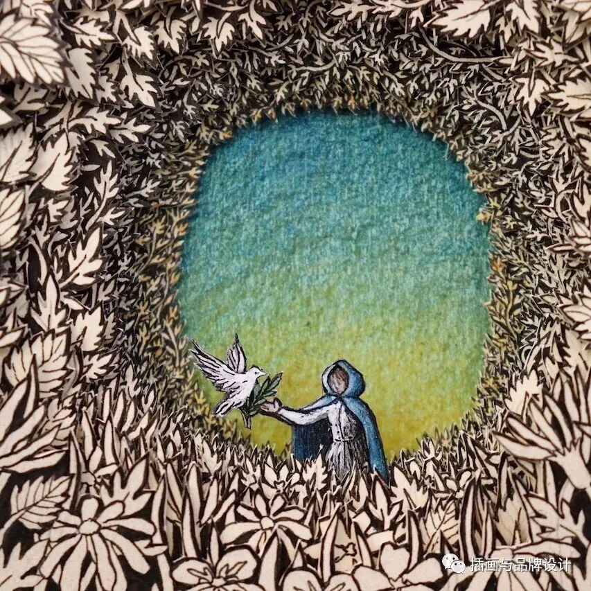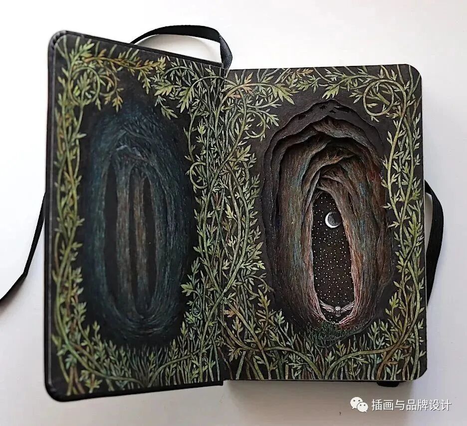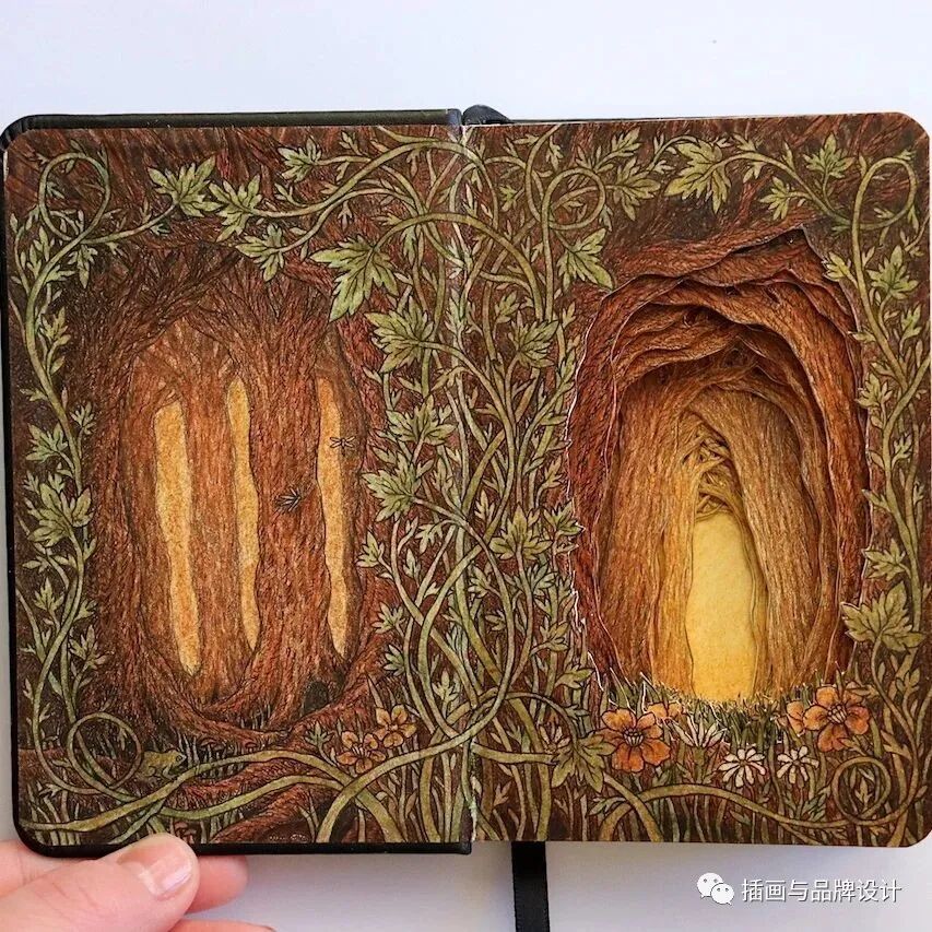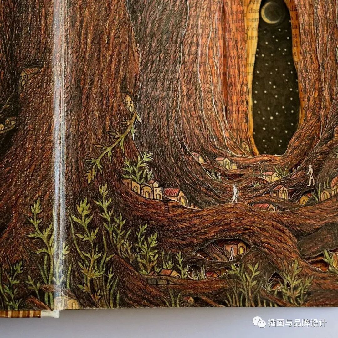 /手作插画丨与传统书封不同,她以雕刻绘画神秘森林之景,唤醒童年回忆