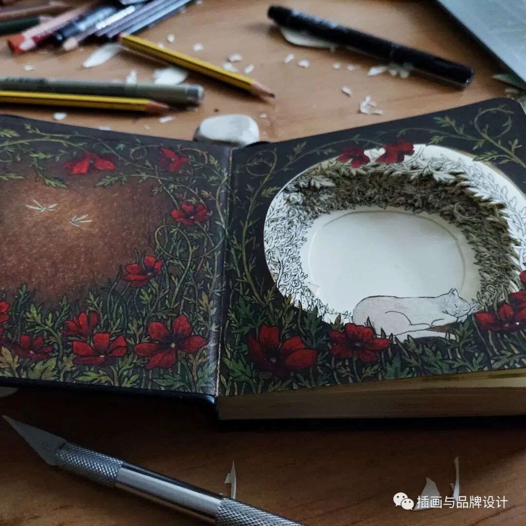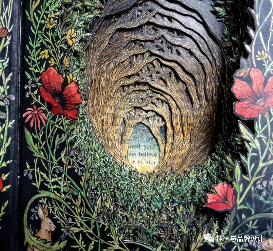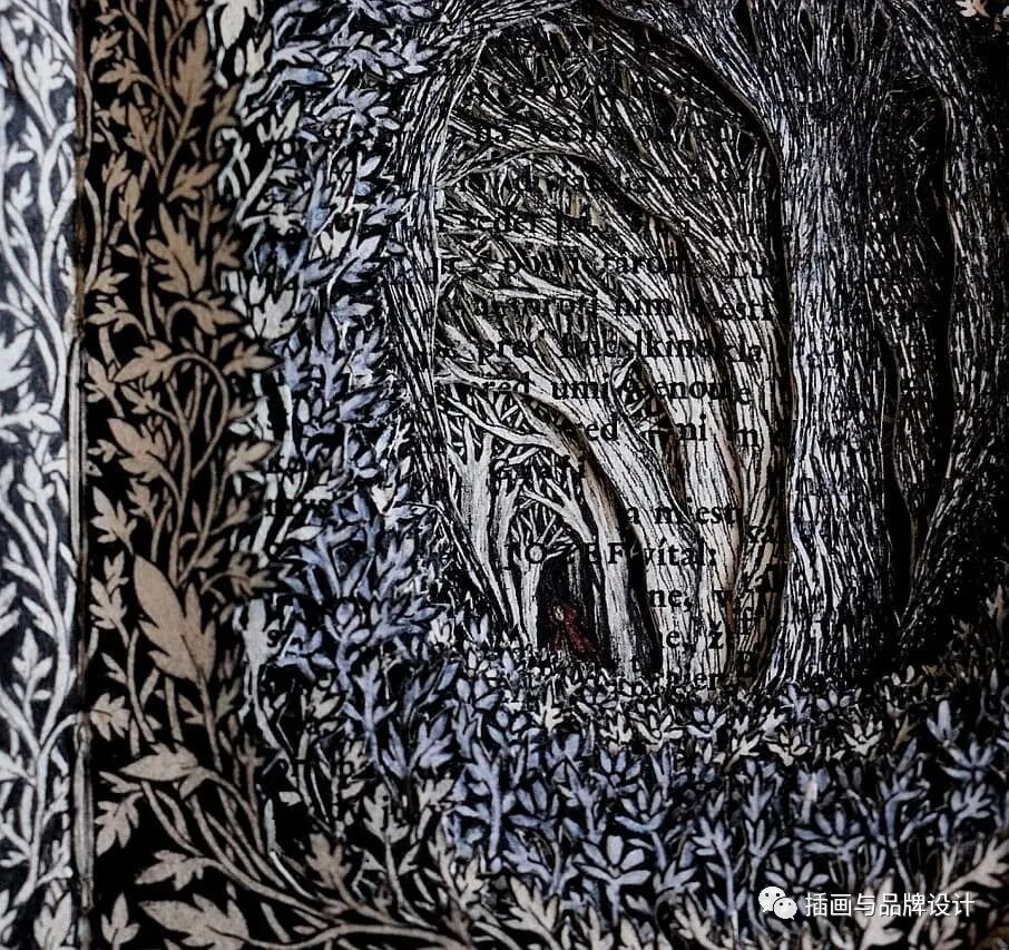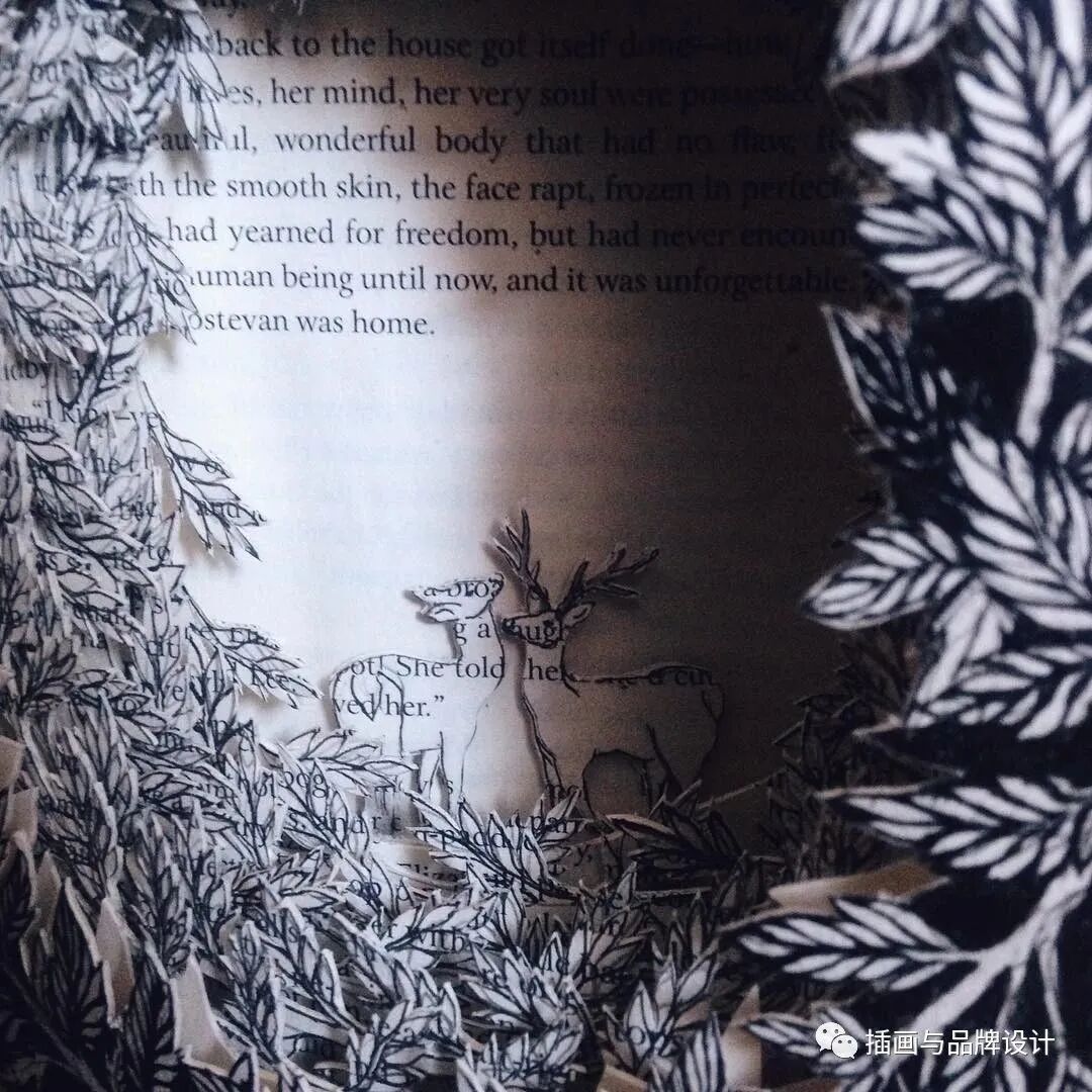 比如她会将书籍页面雕刻成森林