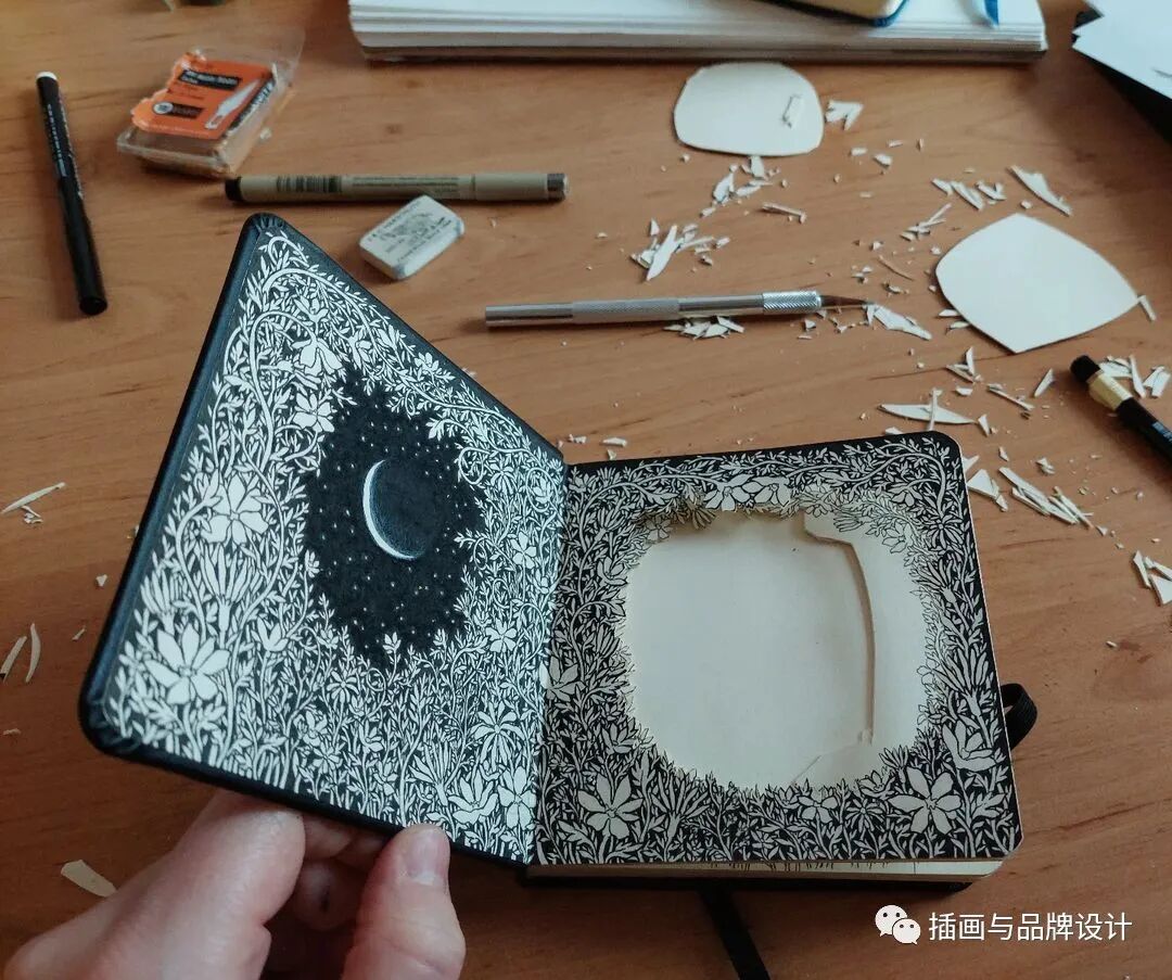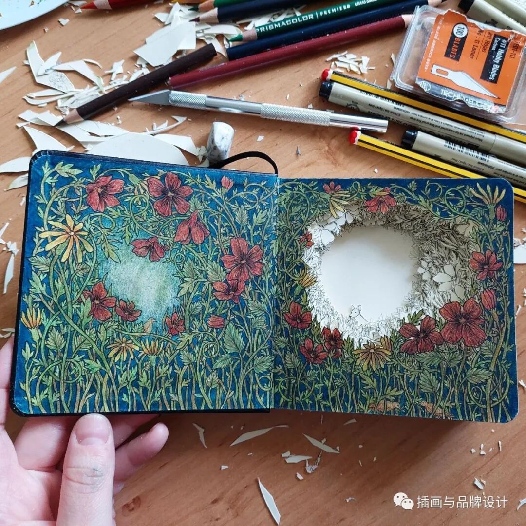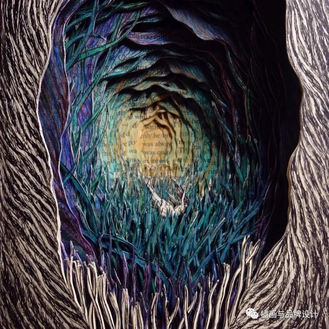 比如她会将书籍页面雕刻成森林