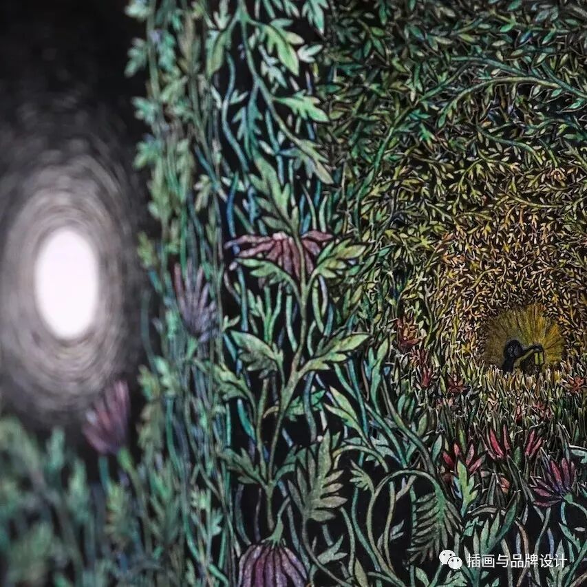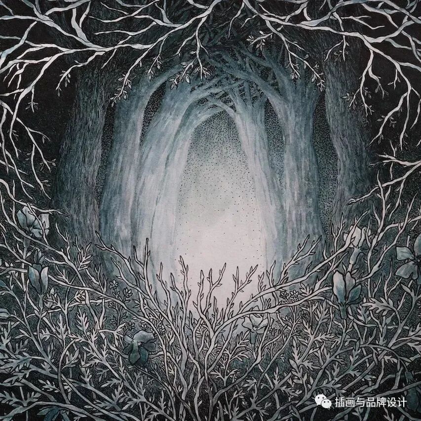手作插画丨与传统书封不同,她以雕刻绘画神秘森林之景,唤醒童年回忆