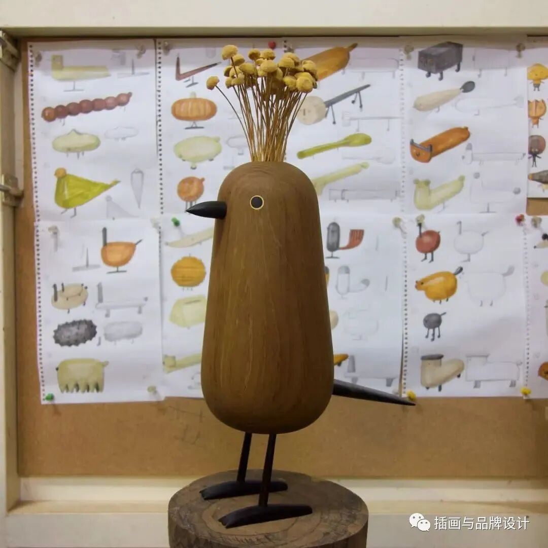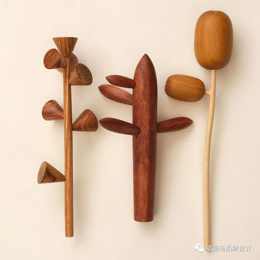 也因此他极简精致的木质小雕塑