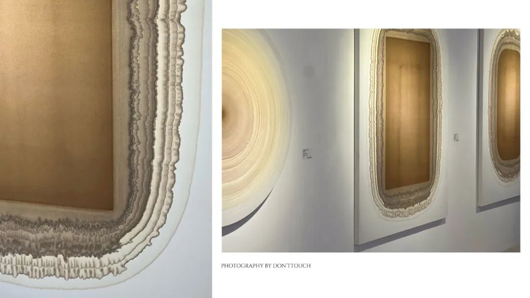 “就如能将寰宇装下天目茶盏一样,我试图把时间、质量转化而来的能量储存在画里。将一个茶饼完全萃取,精确控制剂量,周而复始,把所有茶水滴注进画面。”