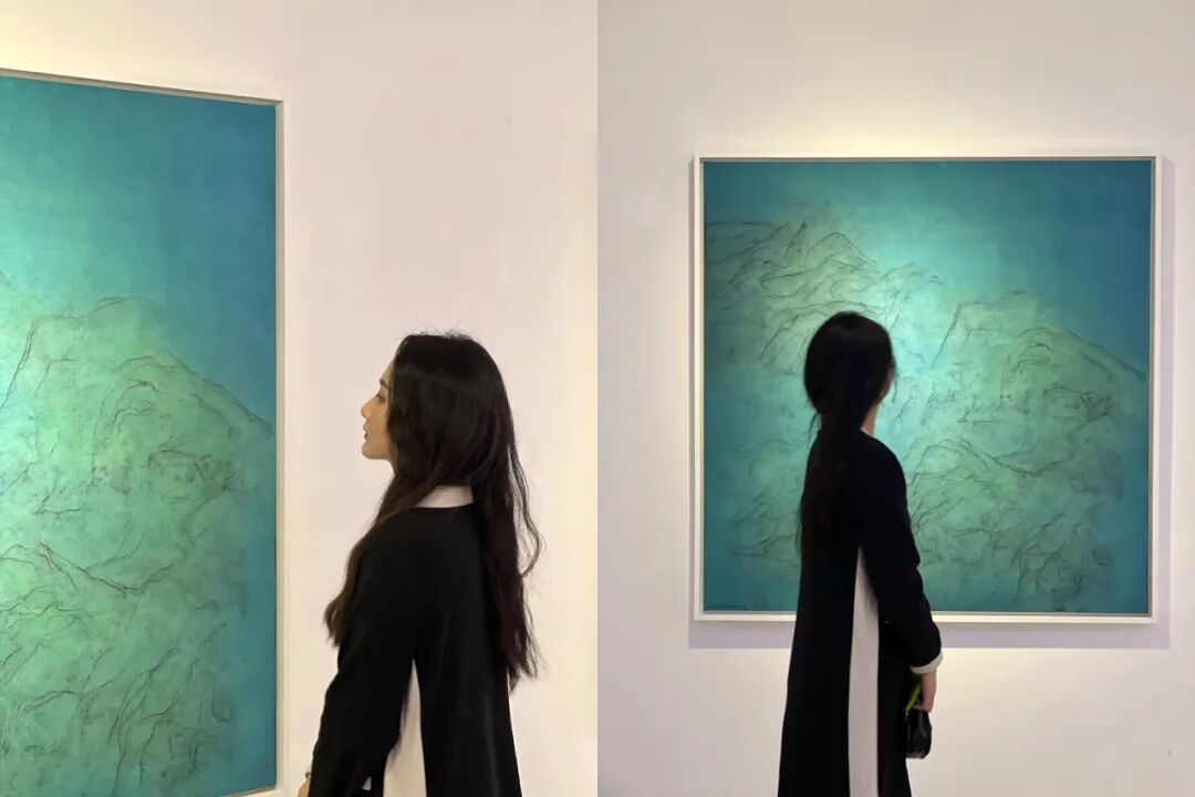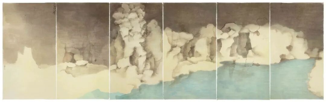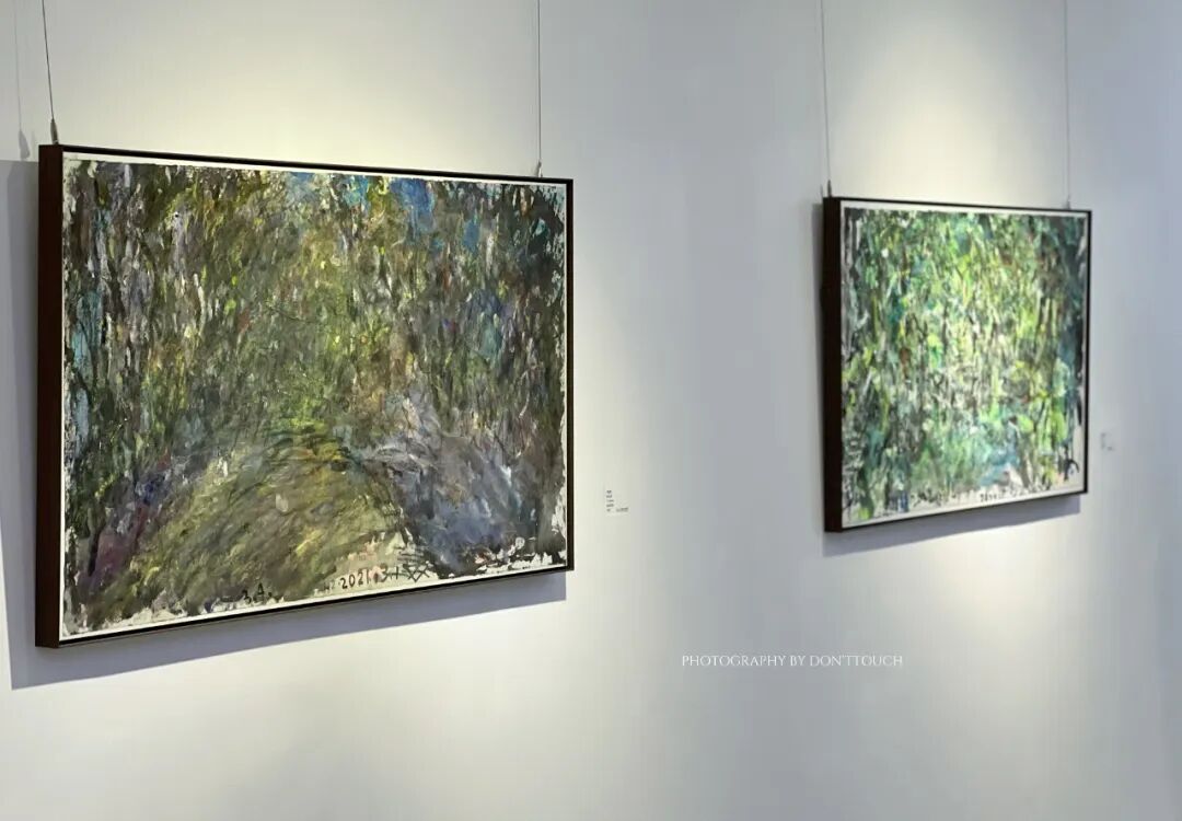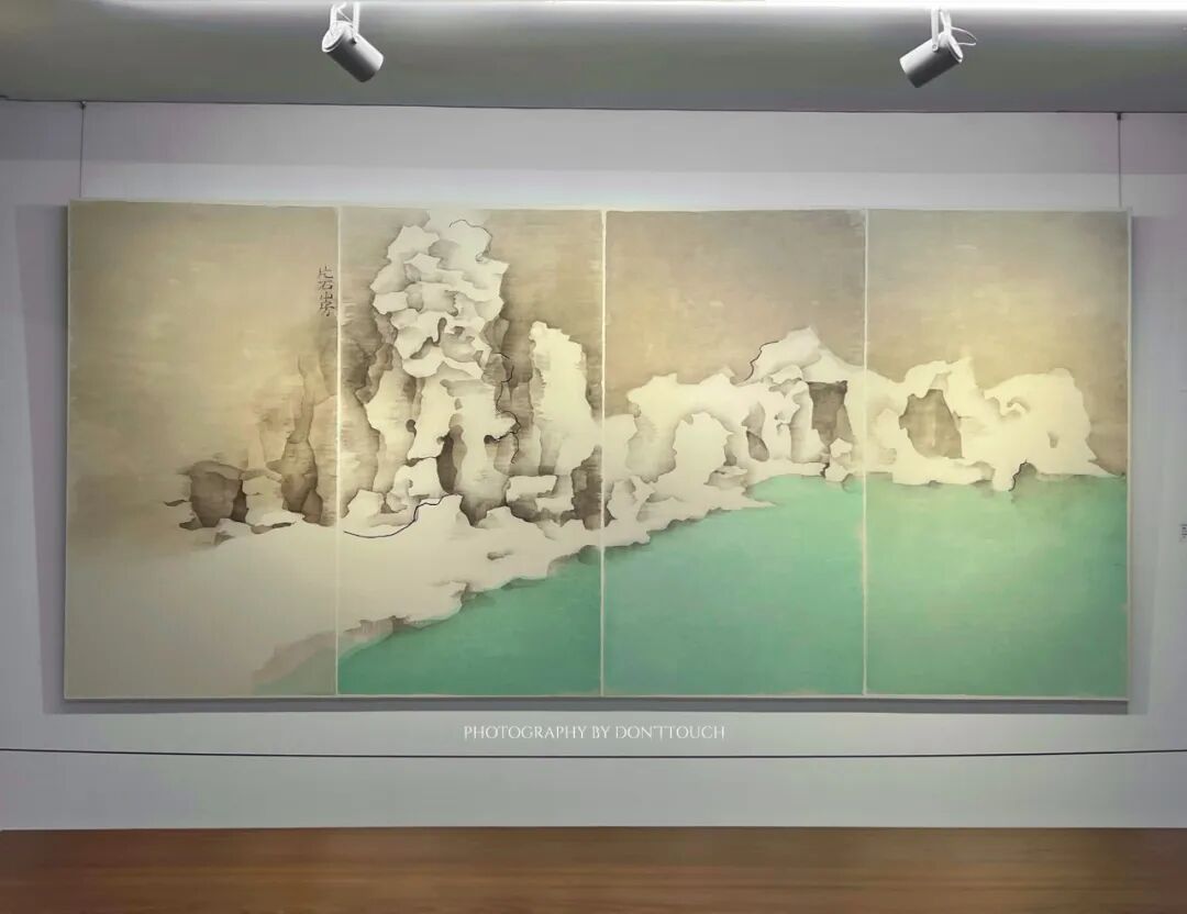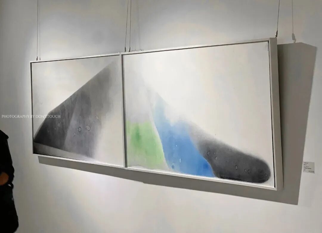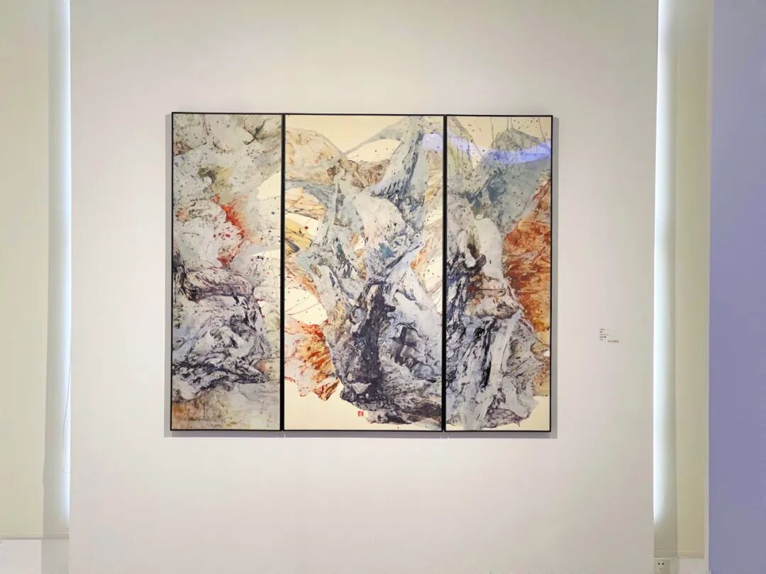 我在这次展览中的作品是近期《中国山》创作系列中的两幅。它们所展现的样式源于我对敦煌莫高窟窟内壁画“山”的总体艺术形式的“文化性”研究和认识。”