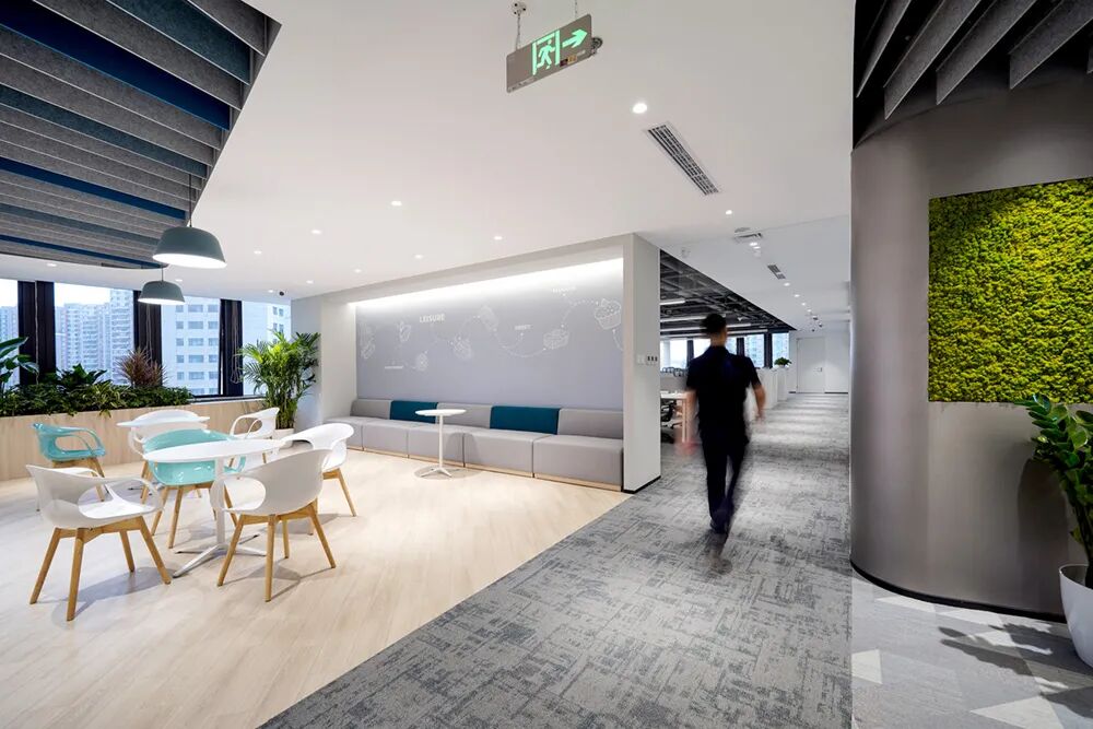 在这样一间办公室当中,尽可能以科学合理的方式放大了属于每个员工的个人空间,避免了因局促拥挤而带来的负面情绪干扰,充分的个人空间有利地促进主观能动性。在照明工程师的精确把握下,窗外自然光与室内照明相得益彰。