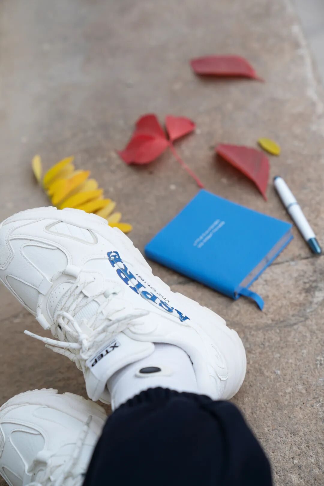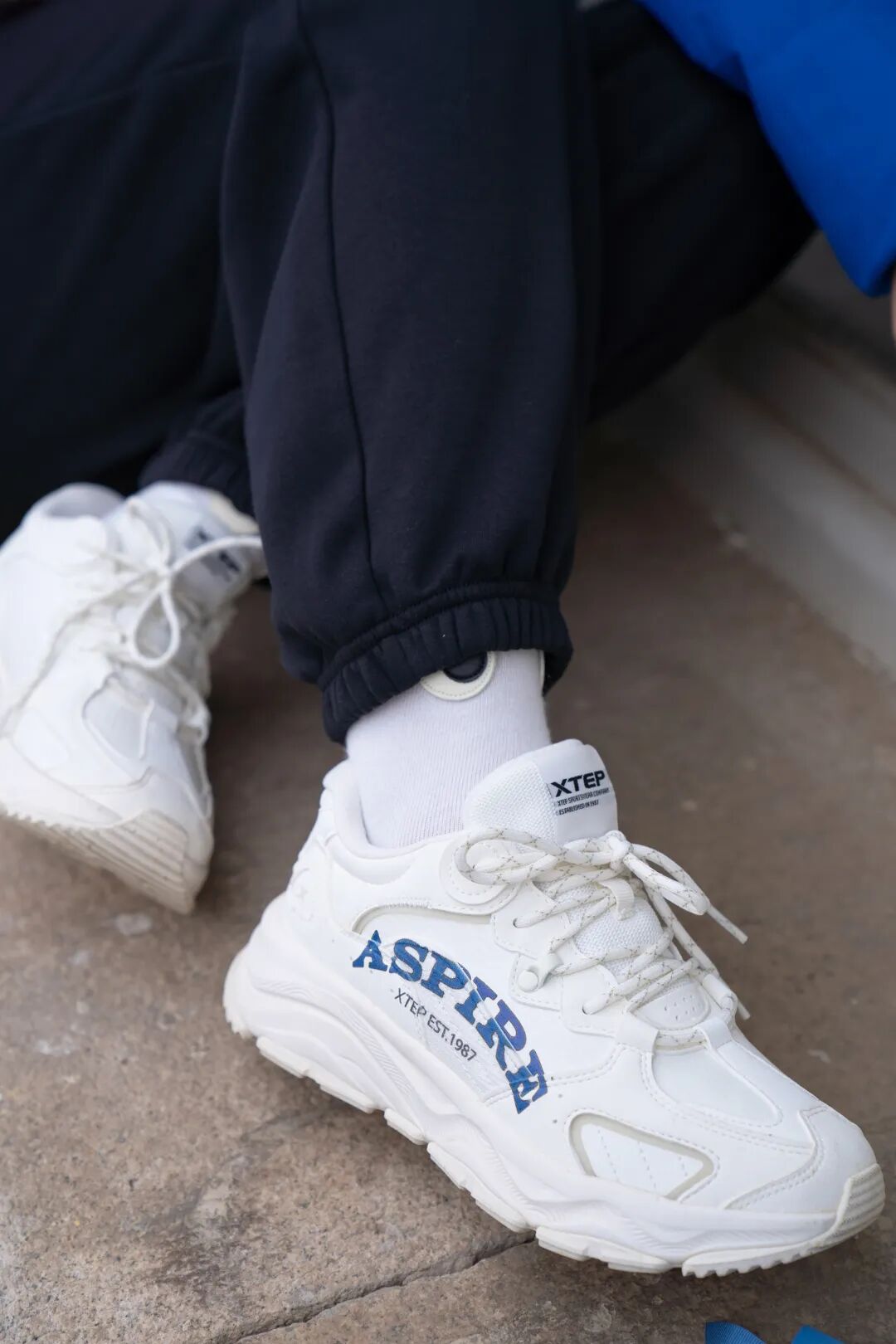 鞋子印花采用了复古字体aspire渴望,写满了年少时的态度,干净爽朗的配色,非常好看,鞋子是下宽上窄的轮廓,很修饰腿型,显着腿更瘦。