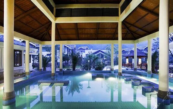 这里的温泉大有来头,其取自地下2500米基岩深处,日出水量约为1000余吨,深层泉温度可达72℃,其中氟、偏硅酸含量更是达到了国家医疗价值浓度标准。