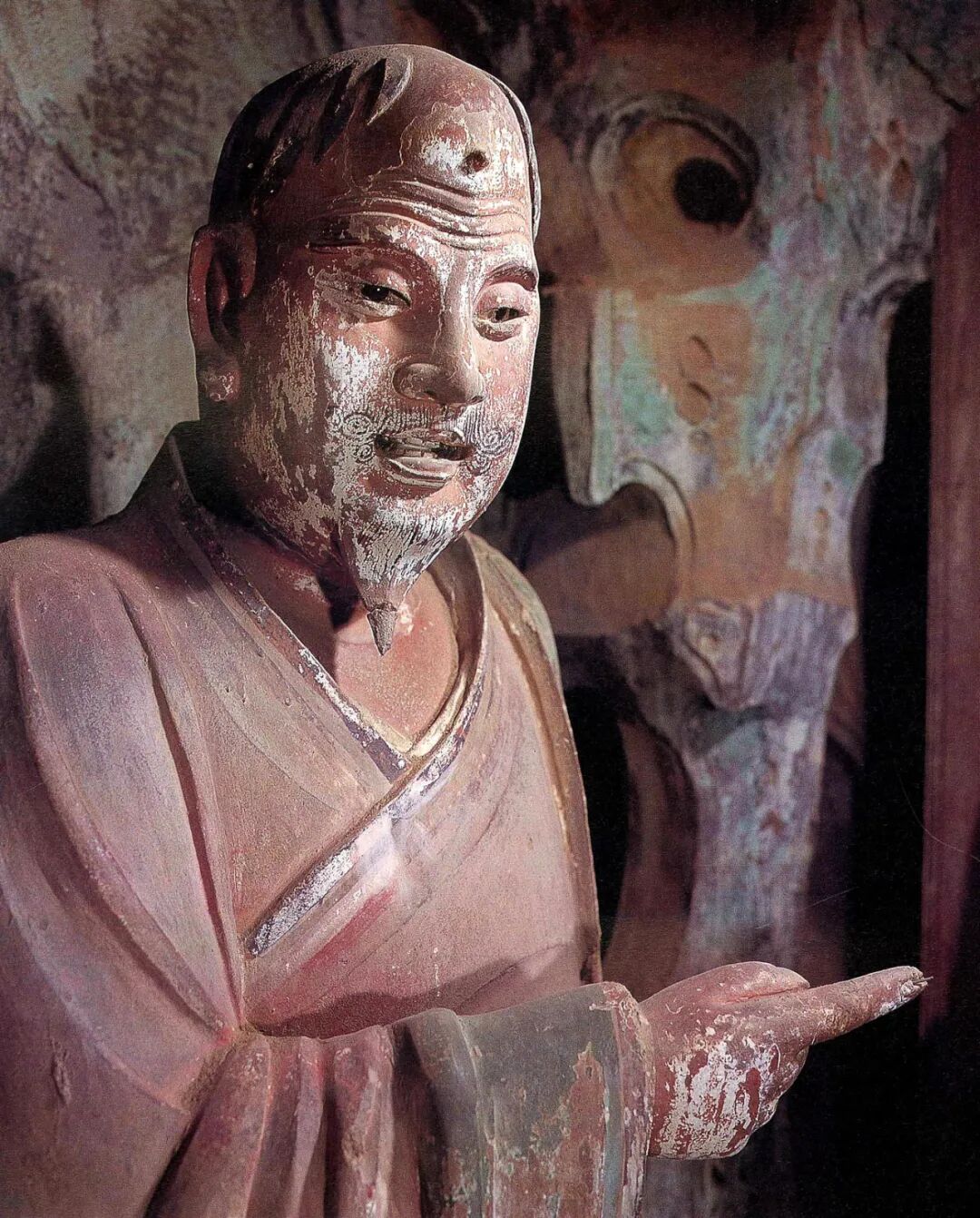 窗台门两侧还塑有供养人像三十多尊,造型写实,表现了明代世俗人物的情貌和服饰。