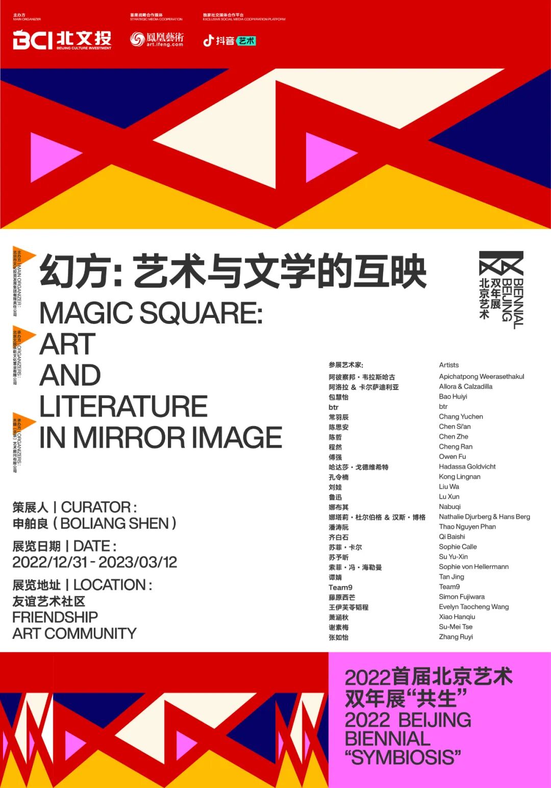 As the theme of the literary unit of the first Beijing Biennial, magic square is not only an embodiment of the writing and text layout of Chinese characters but also the model of Beijing's urban spatial planning. The wonderful symmetry and complementary relationship between figures in different squares echo the characteristics of Beijing, a place where diverse ecology and culture have intermingled since ancient times. It is also reminiscent of “Symbiosis,” bringing great inspiration to the theme of this Biennial.