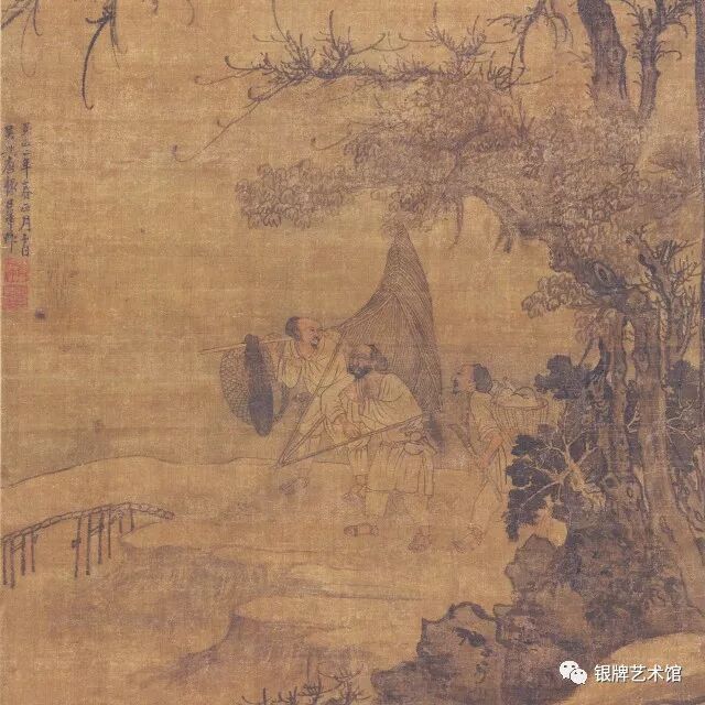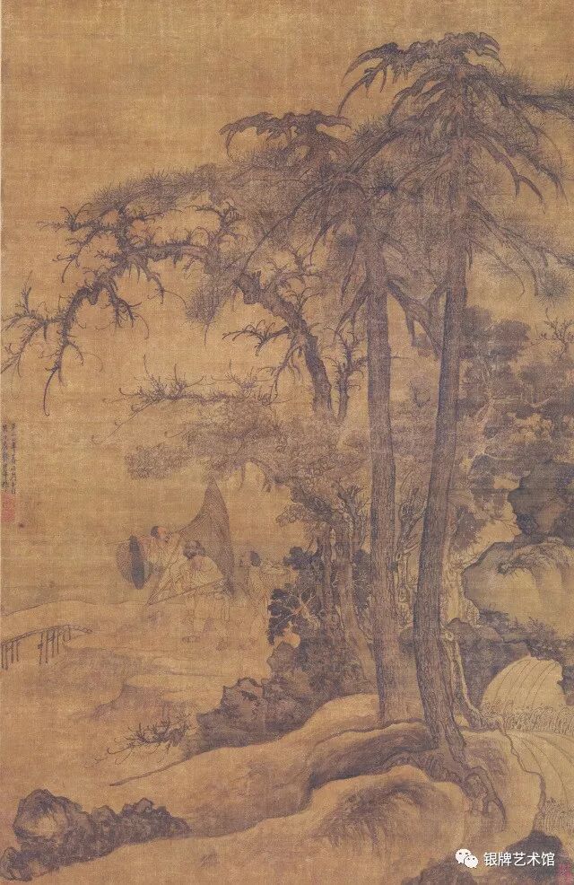 人物刻画细致,树石笔法遒劲秀润,皴染细润、笔法坚法,山石质感极强,呈现较多郭熙画法遗风。