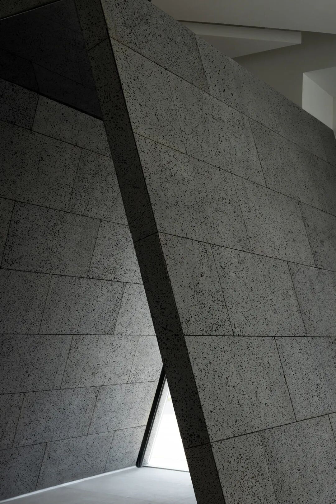 文昌路的西北向,通过转角场地的优势,ECHO LOUNGE以不规则的形式开启了一场“享受美食乐趣”的探索之旅。约束与展示,等同于克制与开放,虚实相间的思考体现了与街区不同界面的处理关系,隐而实的主入口,以坚硬的火山岩表皮为主要特征,强调入口的存在;内部就餐区的虚,则以通透玻璃为介质,便于借用所处的城市景观。