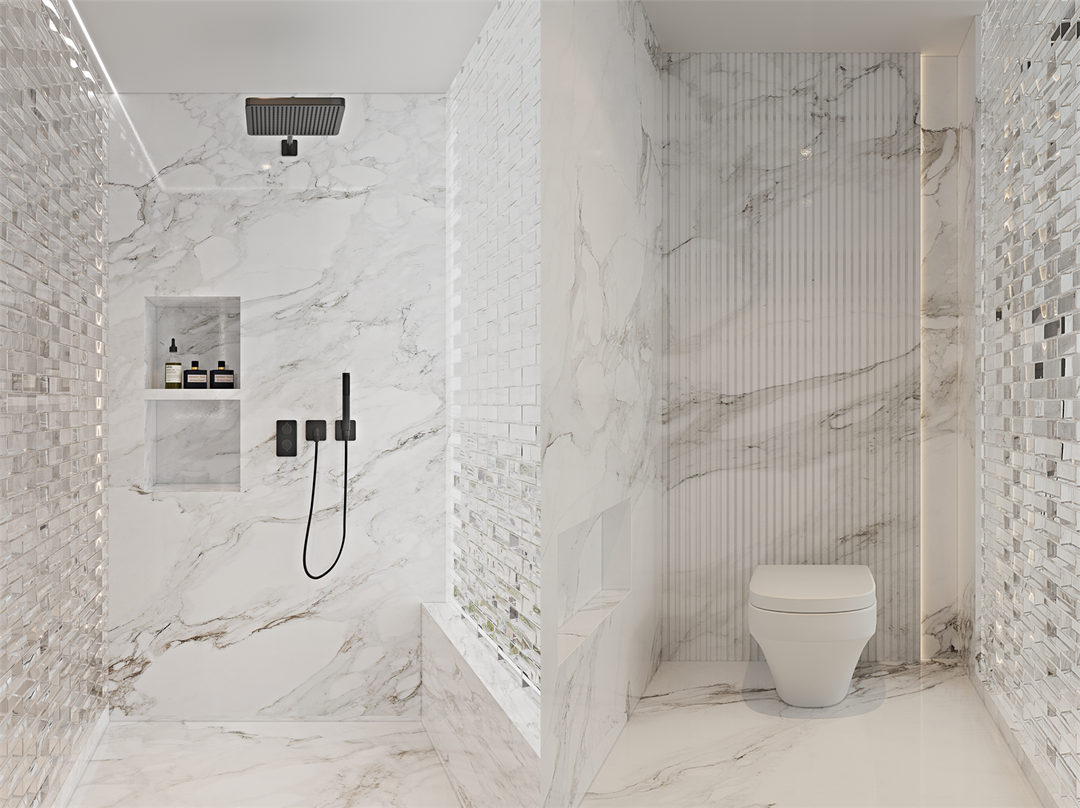 The minimalist style bedroom uses white as the main color of the space. The splicing of the grid block has a certain sense of extension and space. The stone presents rich natural texture and perception levels, and is filled with the beauty of simple luxury.