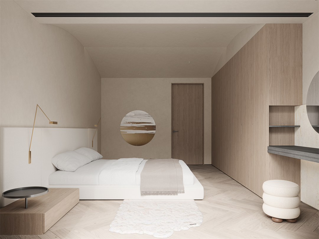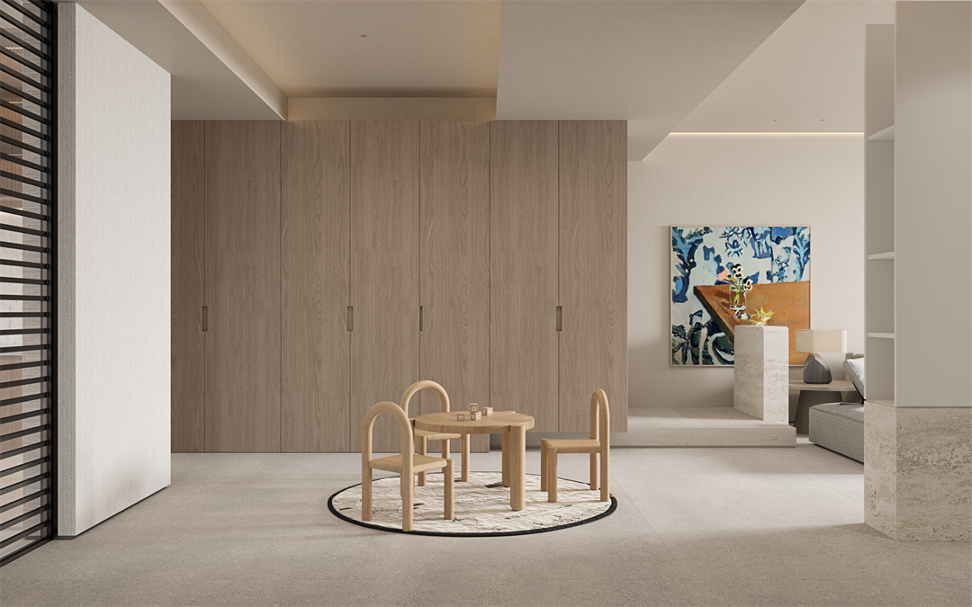 The overall light color veneer and natural material texture are used to create a comfortable living environment, and the space presents a design symbol with a sense of simplicity.