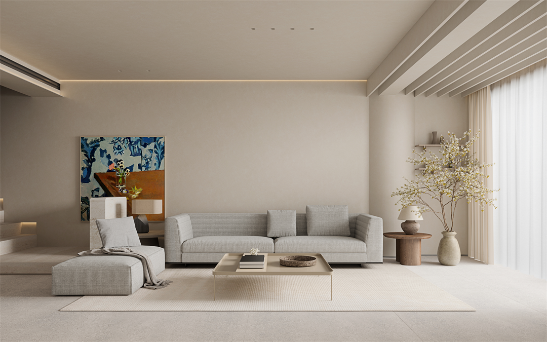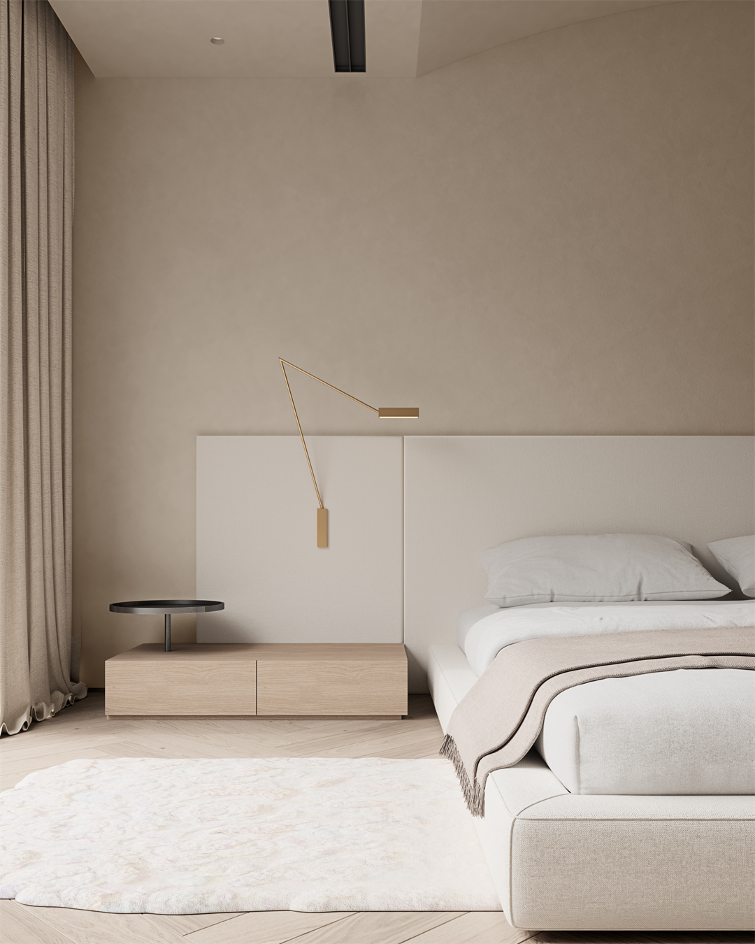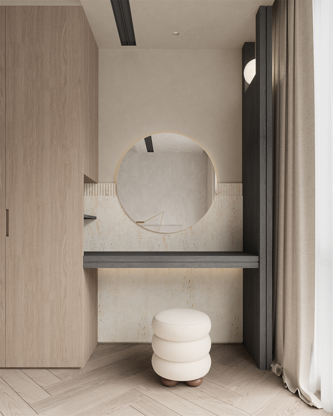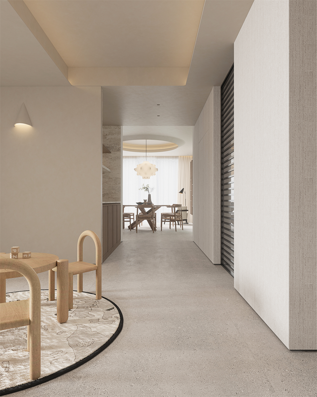 整体以浅色调的饰面和天然的材料肌理来营造令人舒适的居住环境,空间呈现除极简质感的设计符号。