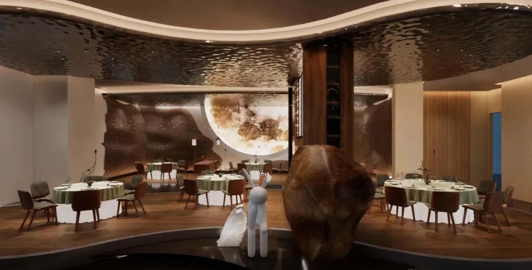 设计理念是从古代诗歌中汲取灵感,从场景还原“横看成峰侧成岭,一轮明月水中映”之境,在山水中品味美食。“荟月”则将一年12月份的风景展现出来,一年十二個月,二十四节气,四季皆风景。