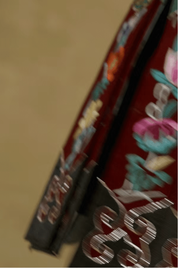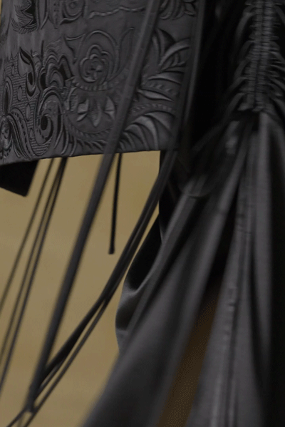 其「苗」高级定制系列以贵州苗寨为基础,用苗族的精巧手工艺苗绣创作出富有生命力的图腾。“百鸟衣”是苗族最隆重的盛装,苗族手工艺的图腾和纹样传递出了浓厚的东方文化,一针一线能够触摸到质朴的民族气息,花鸟鱼虫、大地川流,自然万物呈现在新的设计,刻下属于当下的文化纽带。