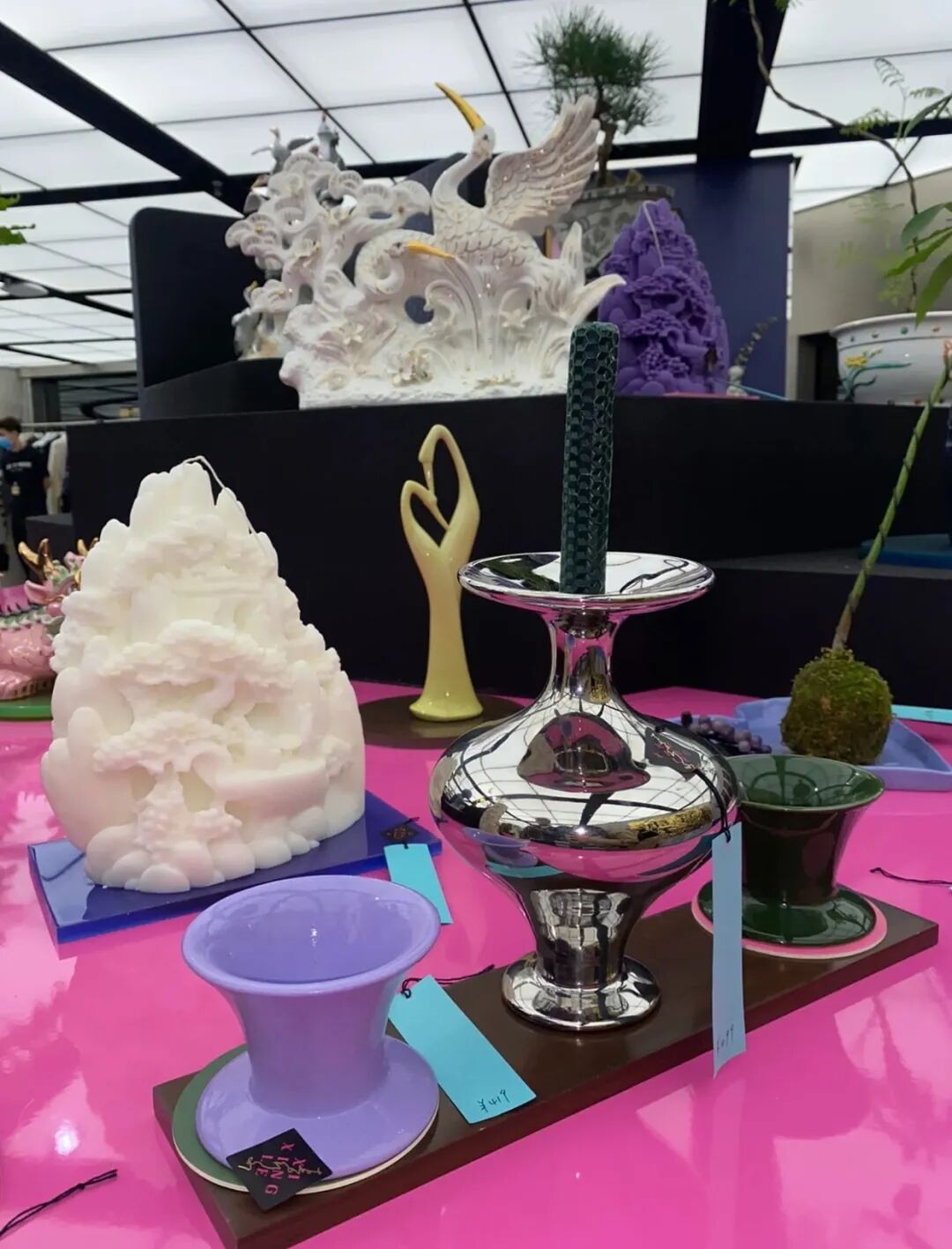 观夏东方精粹香水,雕塑感的切面瓶盖灵感来自庭院中的八边形花窗;观夏中国甜系列陶瓷蜡烛杯,也受古代食物器皿“陶豆”启发,由景德镇陶瓷匠人手工做成。“苏州甜”用纯木制作的提盒,极简东方的视觉美学。“北平甜”用糖葫芦的儿时意向,诠释气味带来的生活画面。