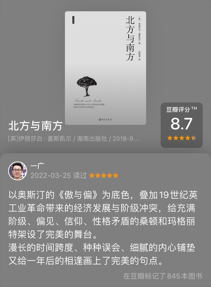 如我在3月的书评所写的一般,如果你对经典浪漫题材作品感兴趣,盖斯凯尔的《南方与北方》,绝对是你不可错过的佳作!